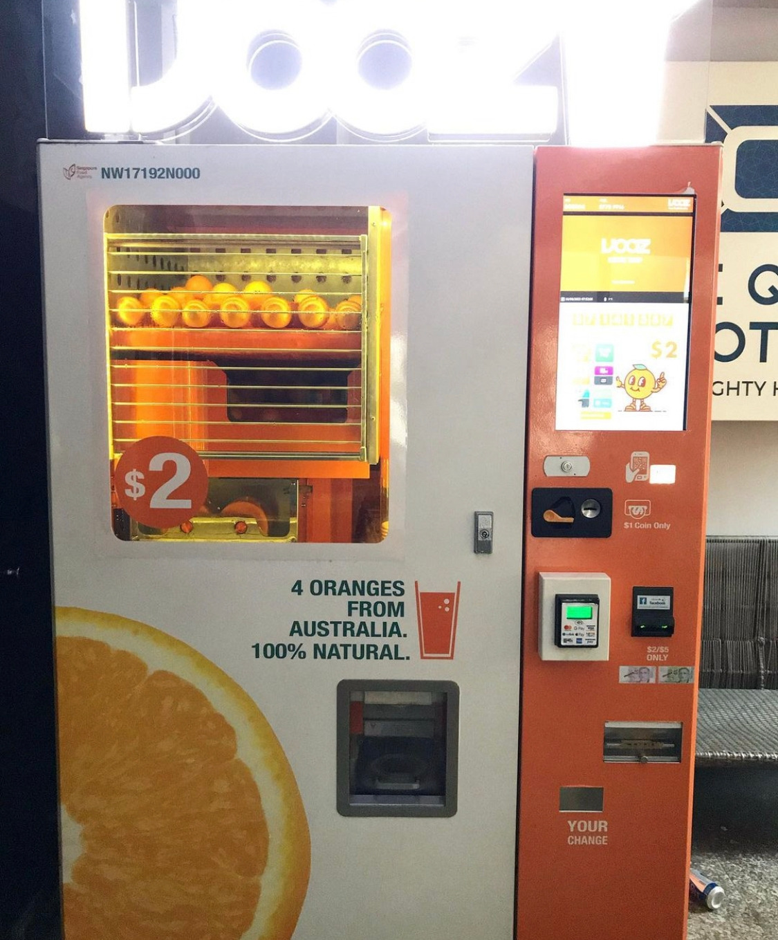싱가폴에서 심심찮게 만날 수 있는 오렌지 착즙 자판기. 현지인들도 꽤 많이 이용하는 듯 했다.