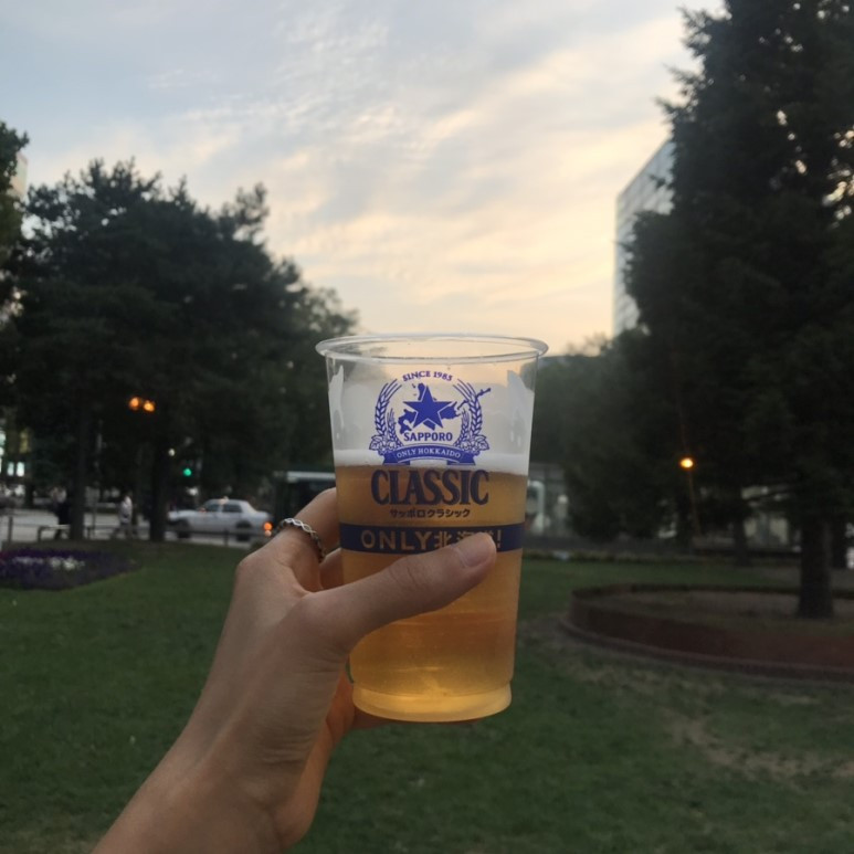 오도리 공원에서는 한창 맥주 축제 시즌이라 각 맥주 회사별로 부스에서 맥주 축제가 한창이었다. 알쓰이지만 왠지 갈증이 나기도 하고, 기념이다- 싶은 마음에 테이크아웃 한 삿포로 생맥주.