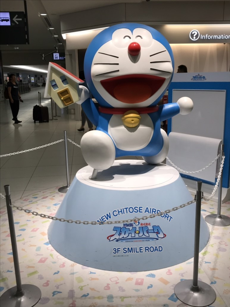 나는 부모님보다 이틀 먼저 8/4일 삿포로에 도착했다. 미리 조금 분위기를 익혀놓고 싶기도 했고, 조금이나마 혼자만의 시간을 가지고 싶기도 해서. 도착하자마자 반겨준 것은 사진으로 이미 많이 보았던 도라에몽. 생각했던 것보다 신치토세 공항 국제선 영역은 그리 넓지는 않았다.