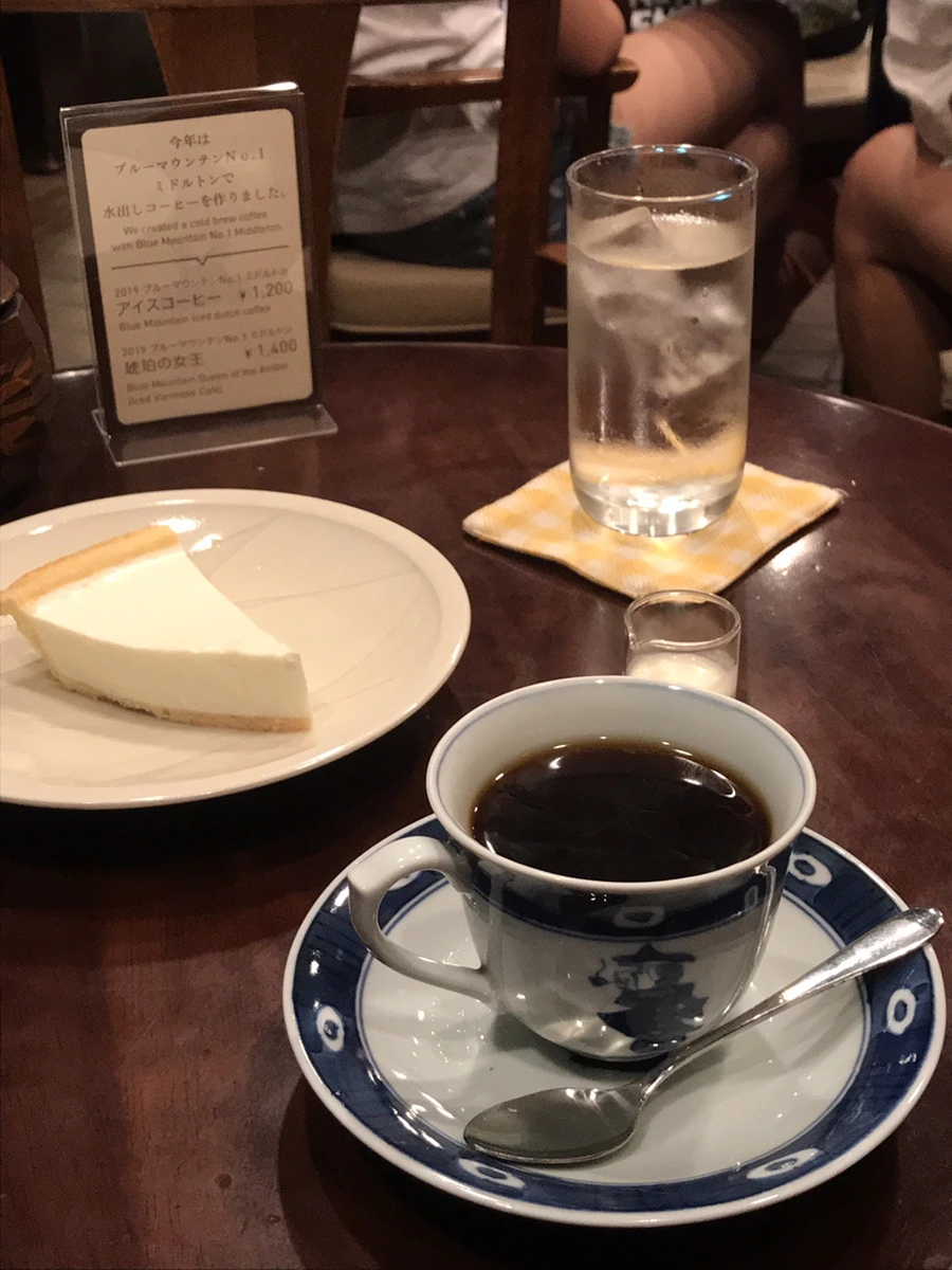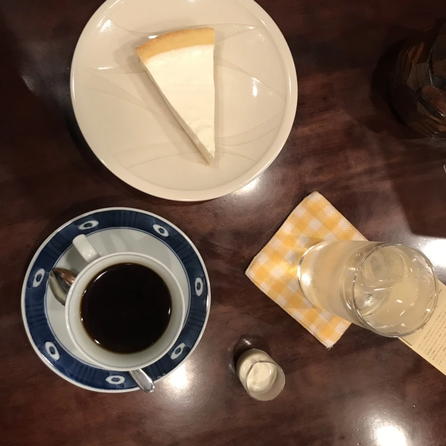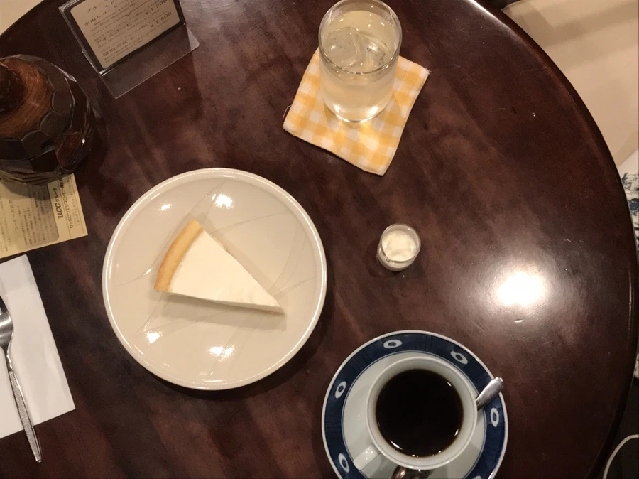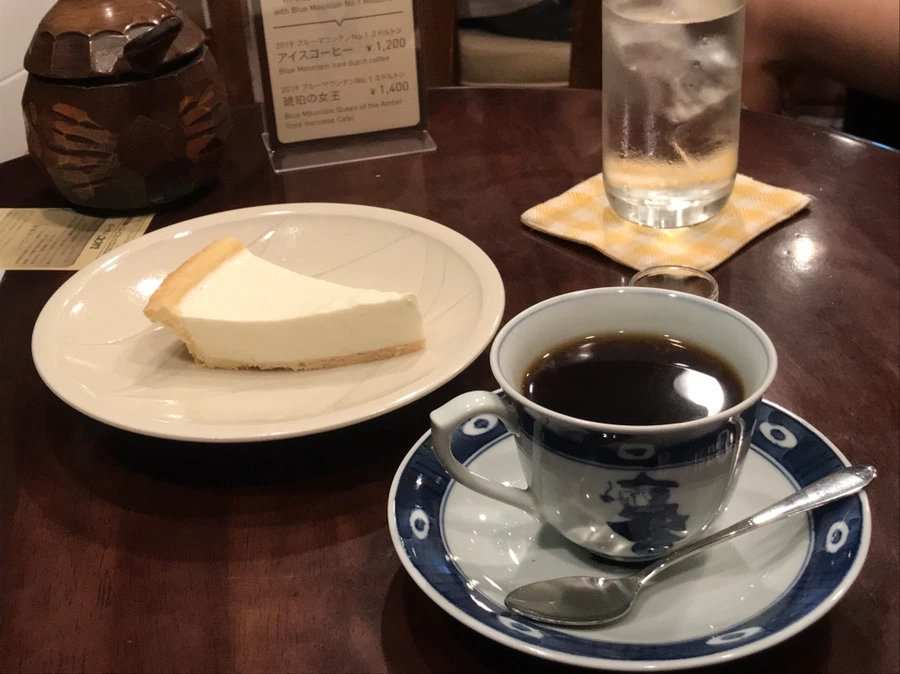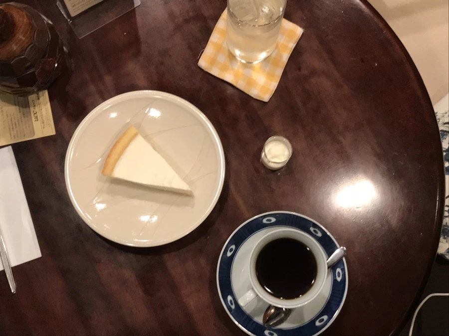 나는 레어 치즈 케이크와 블랜드 커피의 조합으로 -