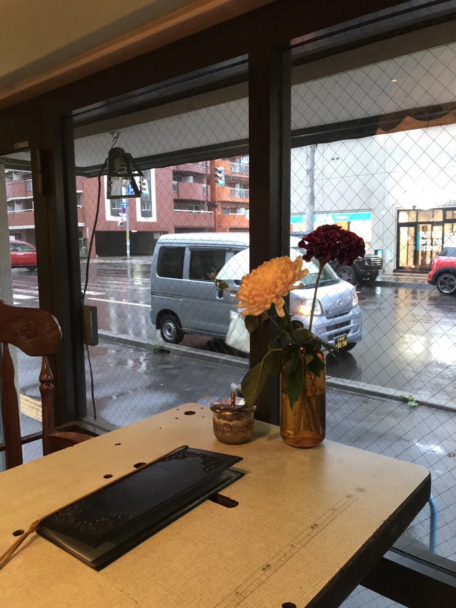 비내리는 풍경이 보이는 창가 테이블에 앉았다. 어중간한 시간이라 그런지 카페에는 아무도 없었다. 조용한 카페에 재즈가 흐르고 빗소리가 간간히 들려오고.