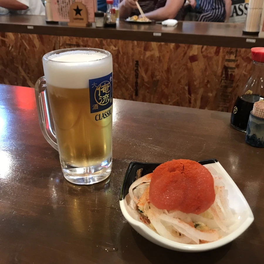 오도리 공원 근처 지하상가의 한 선술집. 생맥주 한 잔에 200엔이라는 엄청난 가격과 유쾌한 직원들의 모습에 왠지 기차여행으로 지친 나에게 힘을 주었다. 명란 계란말이, 명란 사라다와 함께 알쓰답지 않게 생맥 두어잔 가까이 마셔버렸다. 그리고 헤롱거림을 느껴 곧 무한 심호흡..