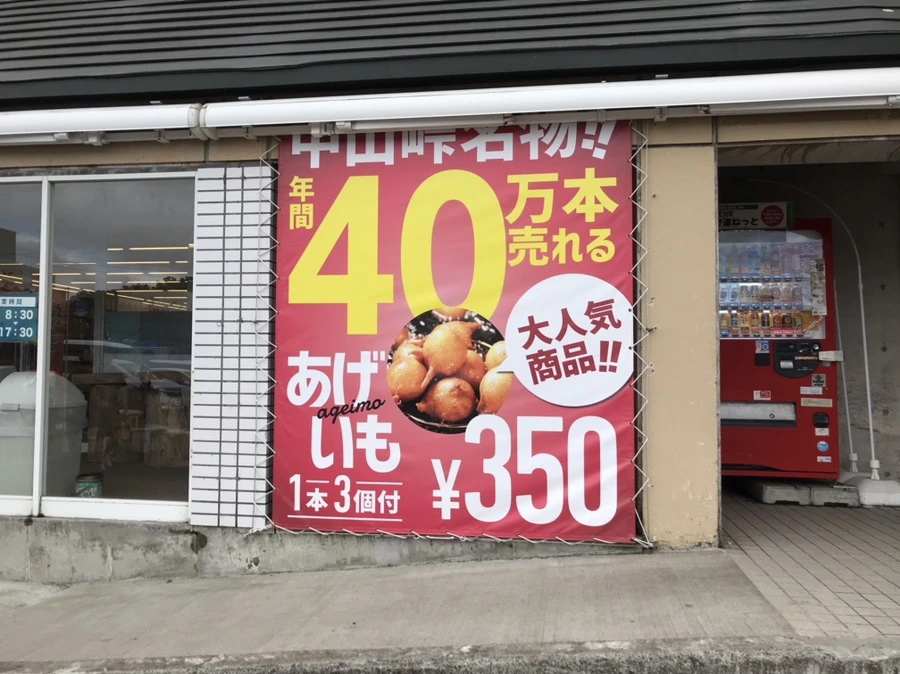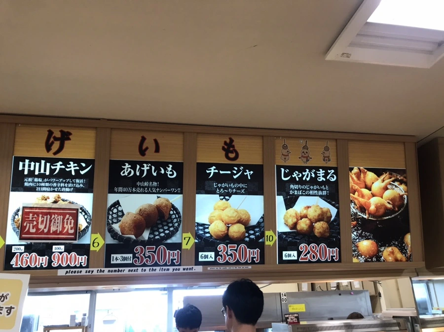 이 휴게소에서만 판매한다는 아게이모 라는 이름의 감자 간식. 맛을 표현하자면 핫도그에서 소세지