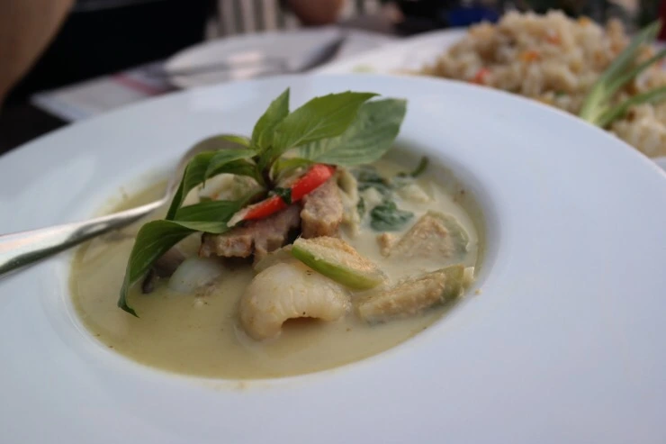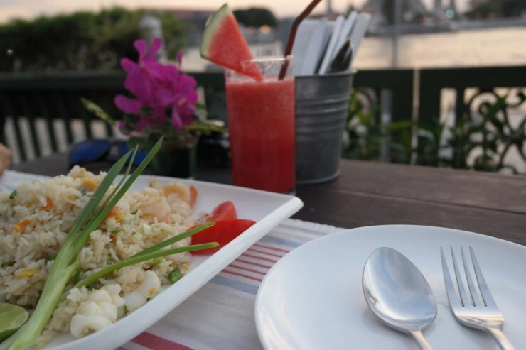 왓 아룬을 마주하는 멋진 뷰로 유명한 곳이었기에, 미리 예약을 하고 가긴 했지만 그래도 조금은 붐빌것이라 예상했었다. 하지만 생각보다 여유로웠고 시끄럽지도 않았다. 예약을 확인하고, 친절한 안내를 받아 사원과 마주앉는 강가의 테이블에 자리를 잡았다. 식사류부터 디저트, 칵테일 등 메뉴는 무척 다양한 편. 메뉴판을 찬찬히 정독하고, 뒤늦게 매력에 포옥 빠져버린 그린커리와 해산물 볶음밥, 수박쥬스를 주문했다. 무엇을 먹더라도 이런 뷰를 마주하는 식사는 꿀맛일거라 생각하면서 -