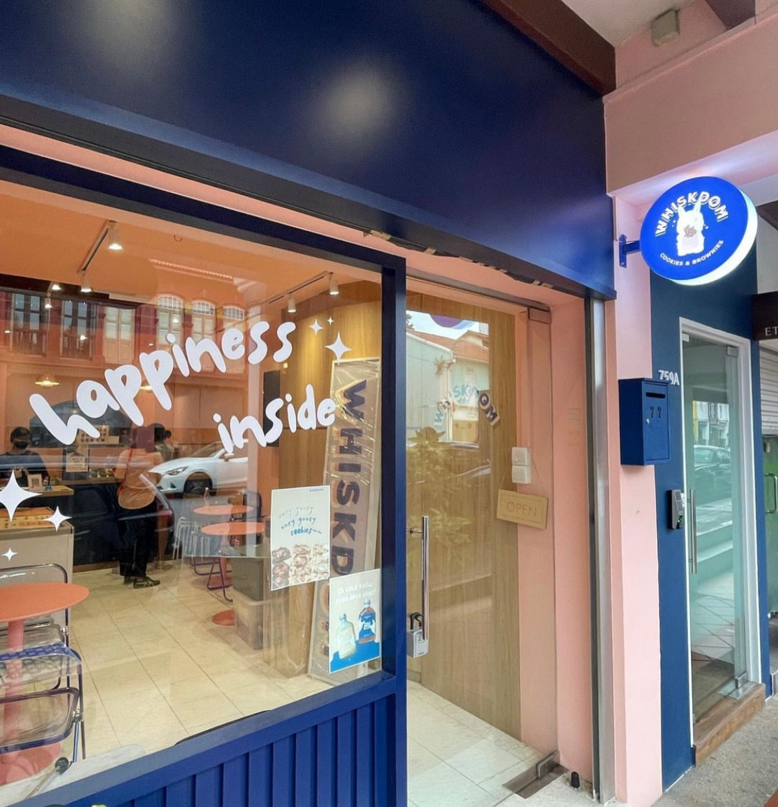 그 순간 토끼그림 간판에 핑크&네이비 컬러 조합의 이 가게가 눈에 들어왔지뭐야.
