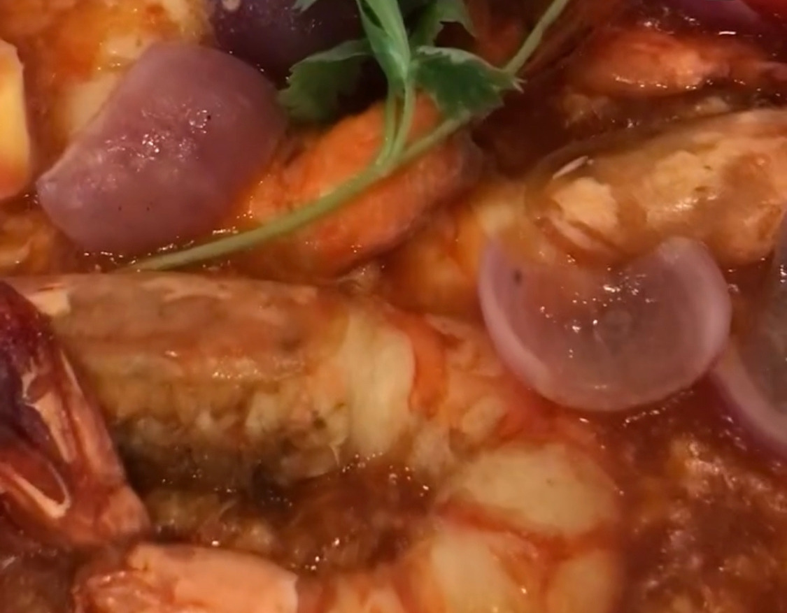 달짝지근하고 뜨거운 칠리소스 속에 왕 큰 새우가 듬뿍 들어있어서 맛있었다.