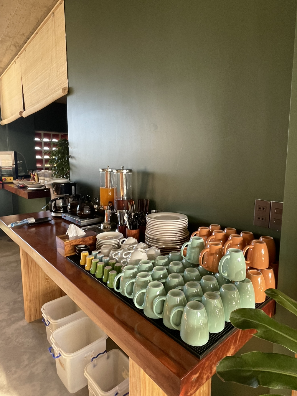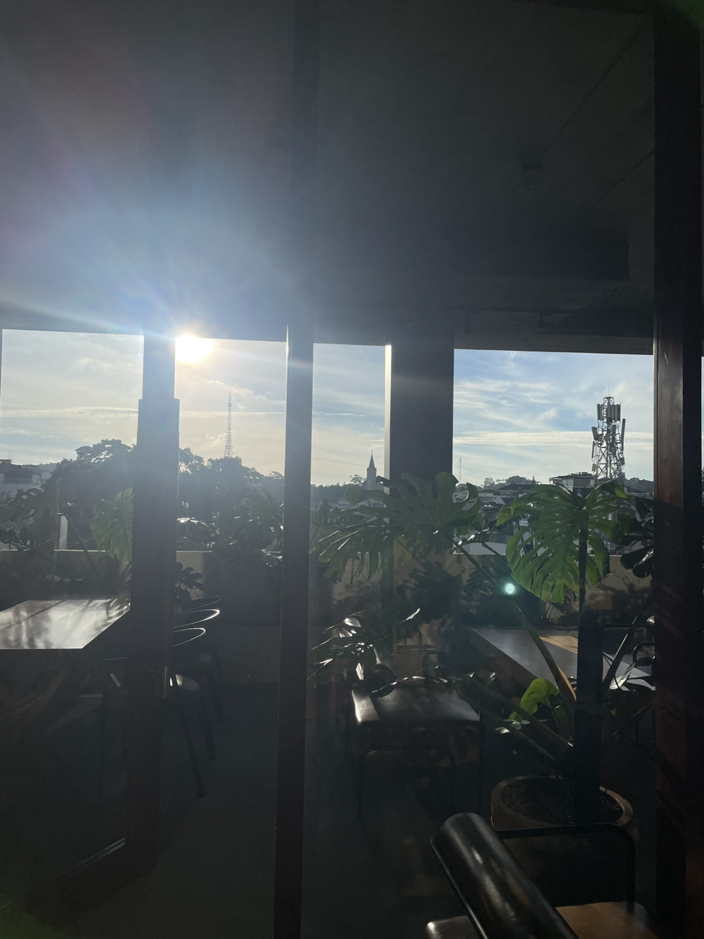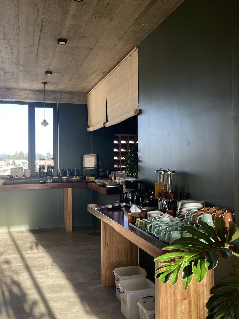 통창 맞은편에는 숙소에서 운영하는 카페인데, 아침에는 조식을 먹는 공간으로 활용된다.