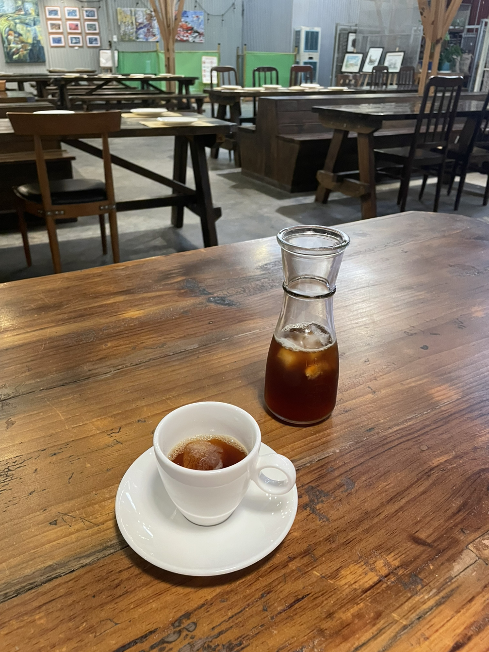 다양한 원두 옵션이 있었는데, 어떤 것을 골랐었는지는 잘 기억이 나지 않지만, 입 안을 청량하게 딱 깔끔한 기분이 들게 해 주는 커피였다. 드립커피를 에쏘잔 크기의 앙증맞은 잔에 내어주는 것도 신기했고 자글자글 얼음이 아니라 동그란 왕얼음인 것도 좋았다. 이유는 귀여우니까.