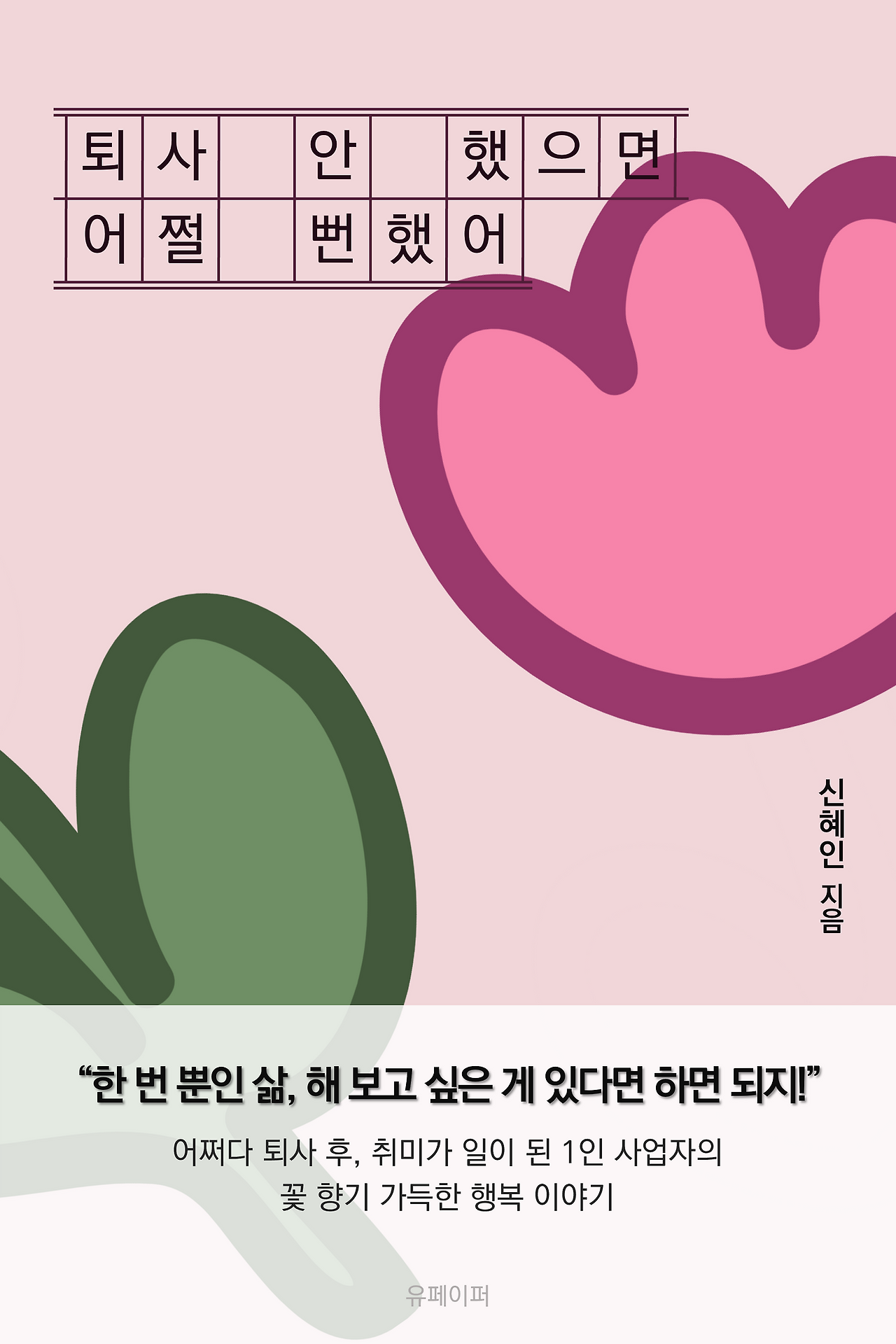이는 본문 속에 한 문장으로 적혀 있는 글이었는데, 현재 내 삶의 방식과 책 속의 이야기들은 모두 퇴사를 하지 않았다면 불가능한 것들이기에 여러 후보군들을 제치고 당당히 제목으로 선정되었다. 책 속에는 회사원일 때 행복을 찾으려 부단히 노력했던 이야기부터, 꽃을 만나 고민하던 시절, 그리고 플라워 클래스를 진행하다가 지금의 온라인 플라워 라이프스타일샵 '르셀레네'를 운영하게 된 이야기까지 모두 담겨있다.
