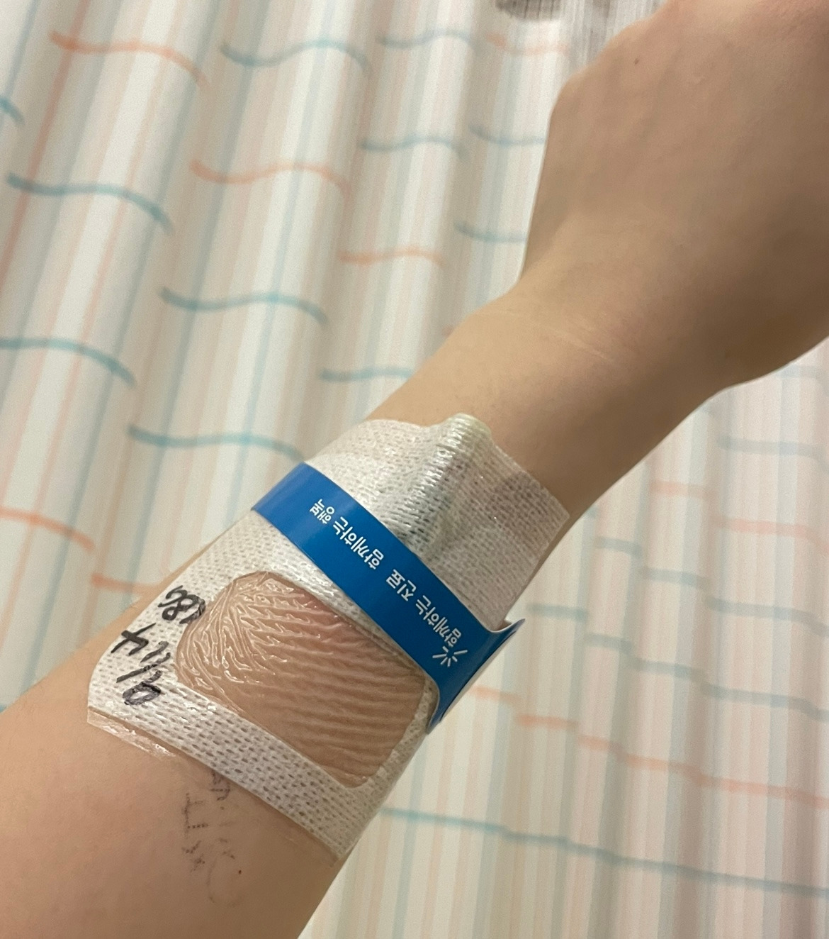 병실에 있다 보니 내 팔에는 어느새 기다란 바늘이 꽂혀있었고, 그 무섭다는 항생제 테스트까지 마치게 되었다. 살을 포 뜨는 느낌이라느니, 수술 과정 중에 가장 아팠던 순간이었다느니 하는 괴담(?)이 퍼져있던 터라 너무 공포스러웠지만, 생각보다 별게 아니었어서 앞으로 남은 과정도 이대로만 무사히 진행되기를 하고 생각했다.