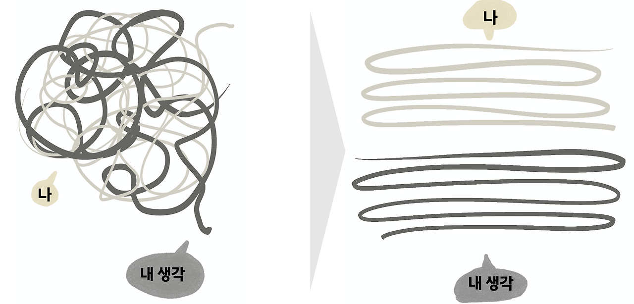 생각을 피하거나 덮는 것이 아니다. 도망가는 것도 아니다. 그 생각을 잘 이해해 주고 인지한 후 잠시 생각을 그 자리에 앉혀두는 것이다.