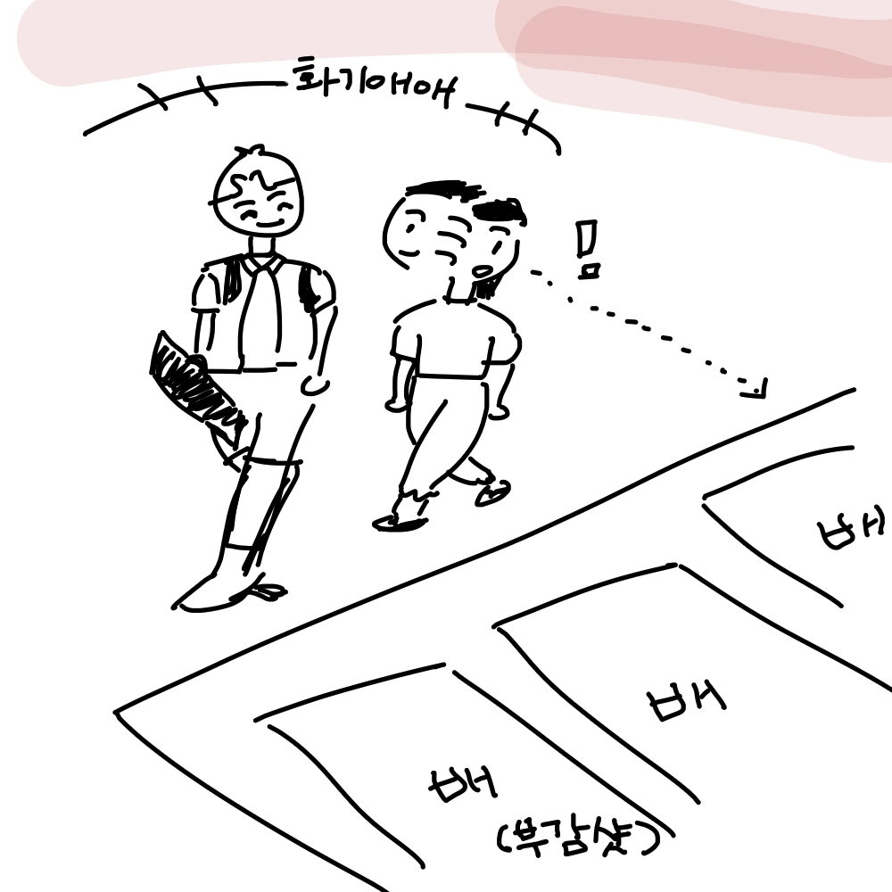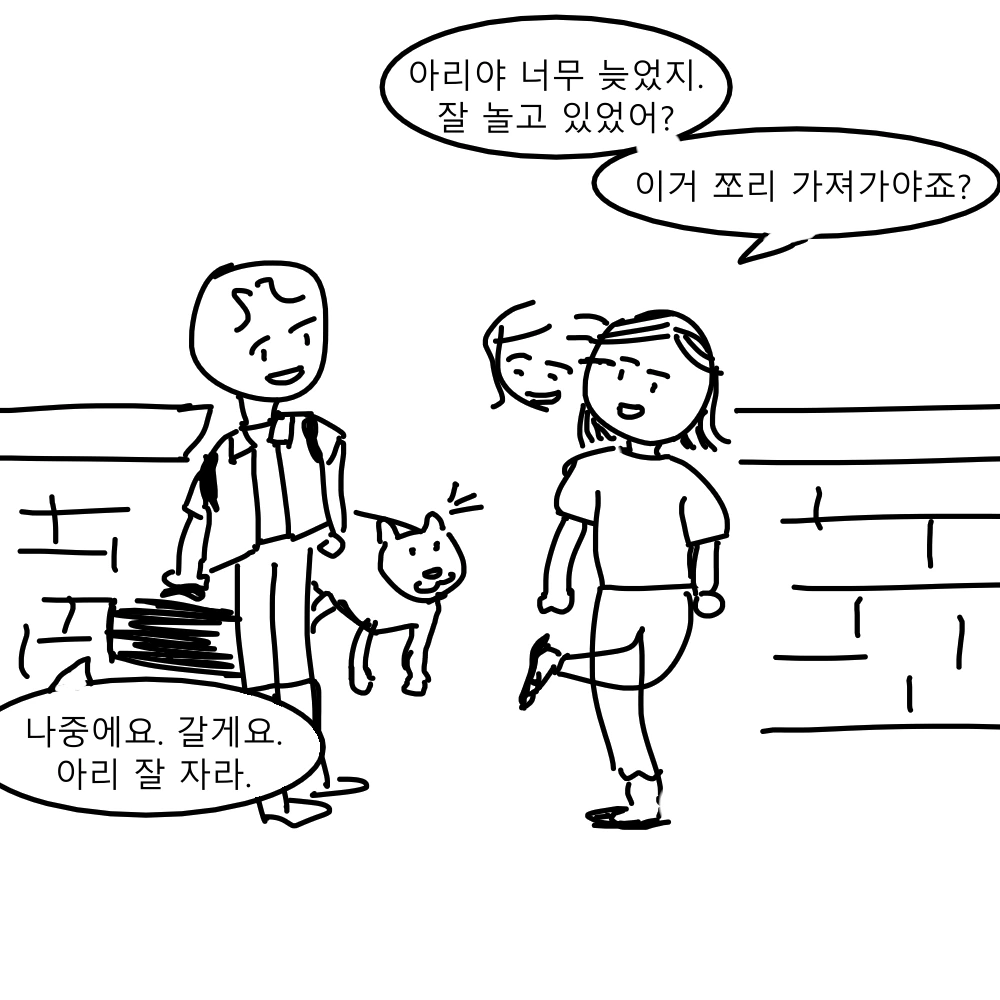 찬영과 용히, 방파제 모퉁이를 돌아 지나치는데