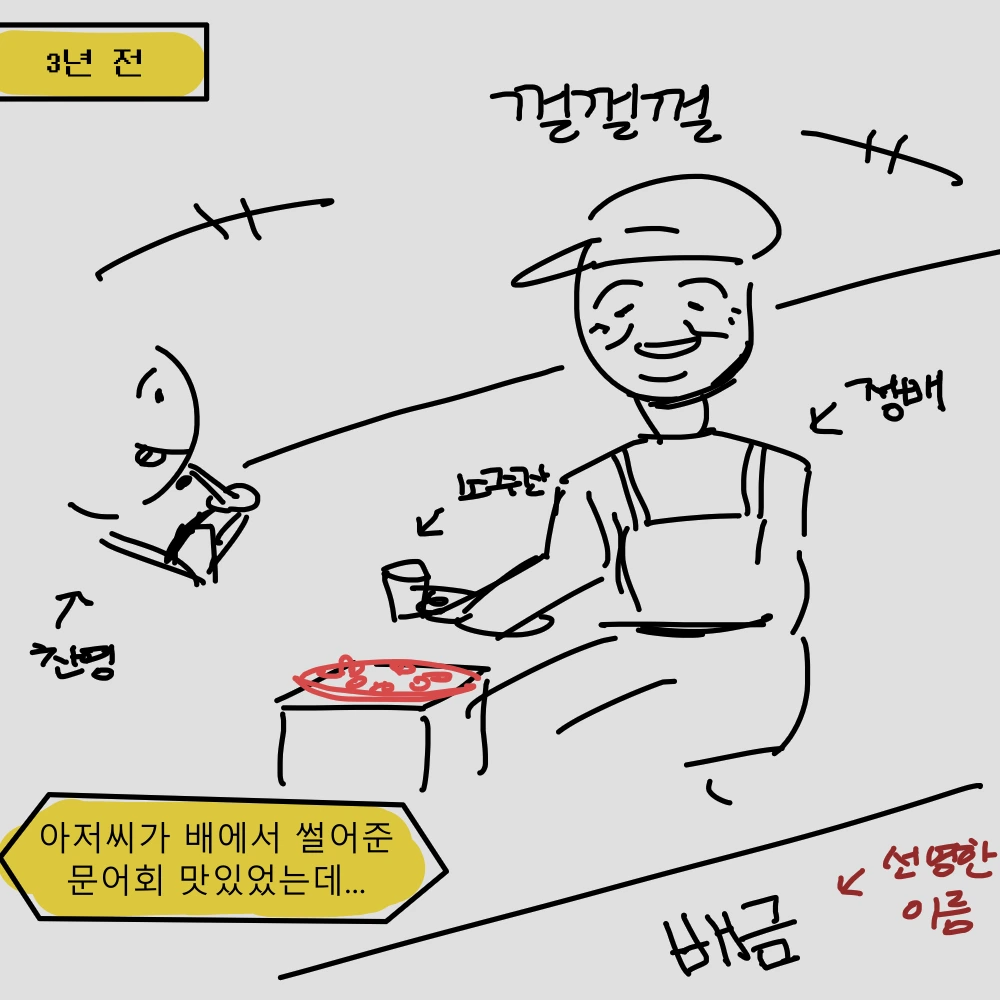 배금호 뱃머리에서 정배와 돌문어 썰어먹던 추억에 젖는데