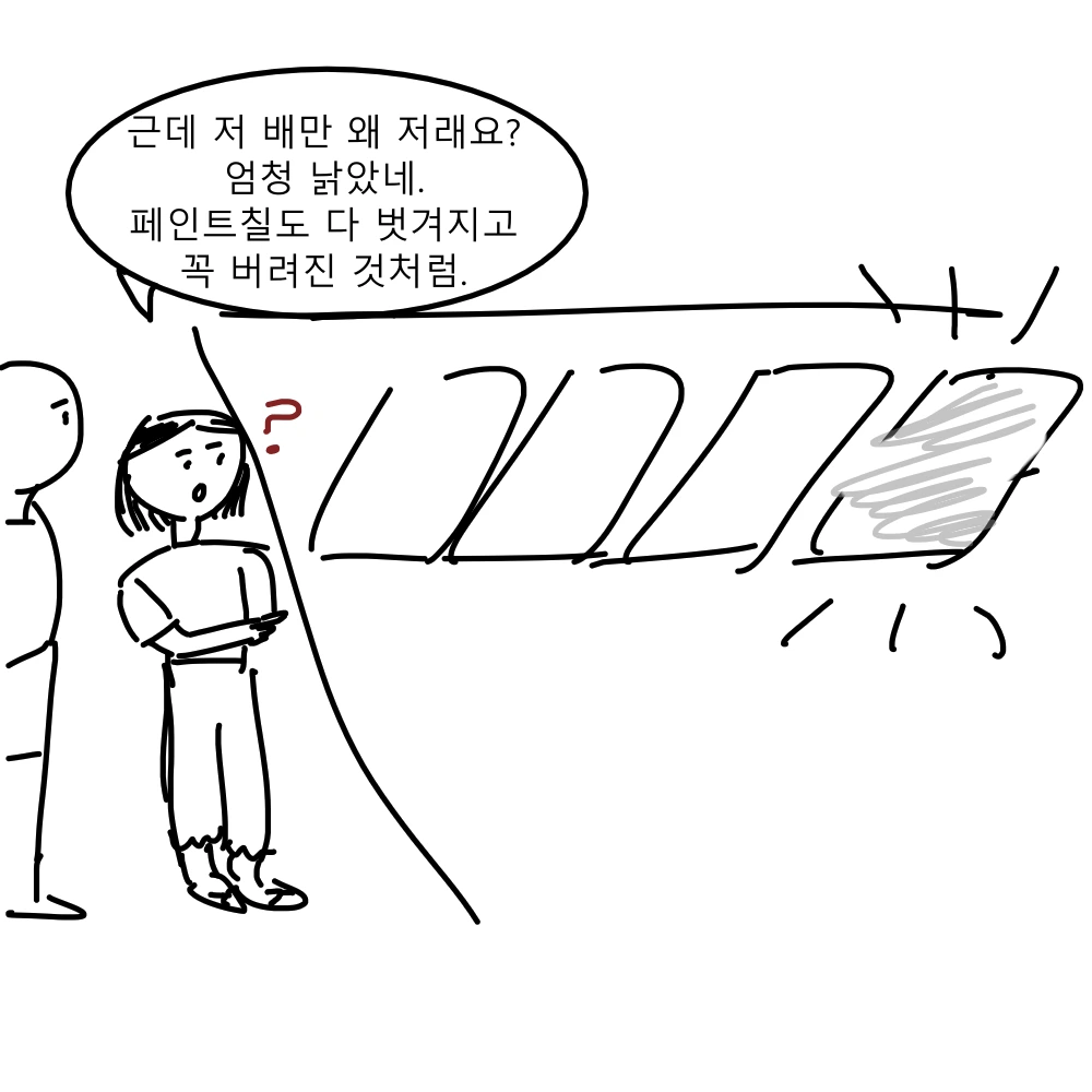 군데군데 페인트칠 벗겨져 낡아빠진 배