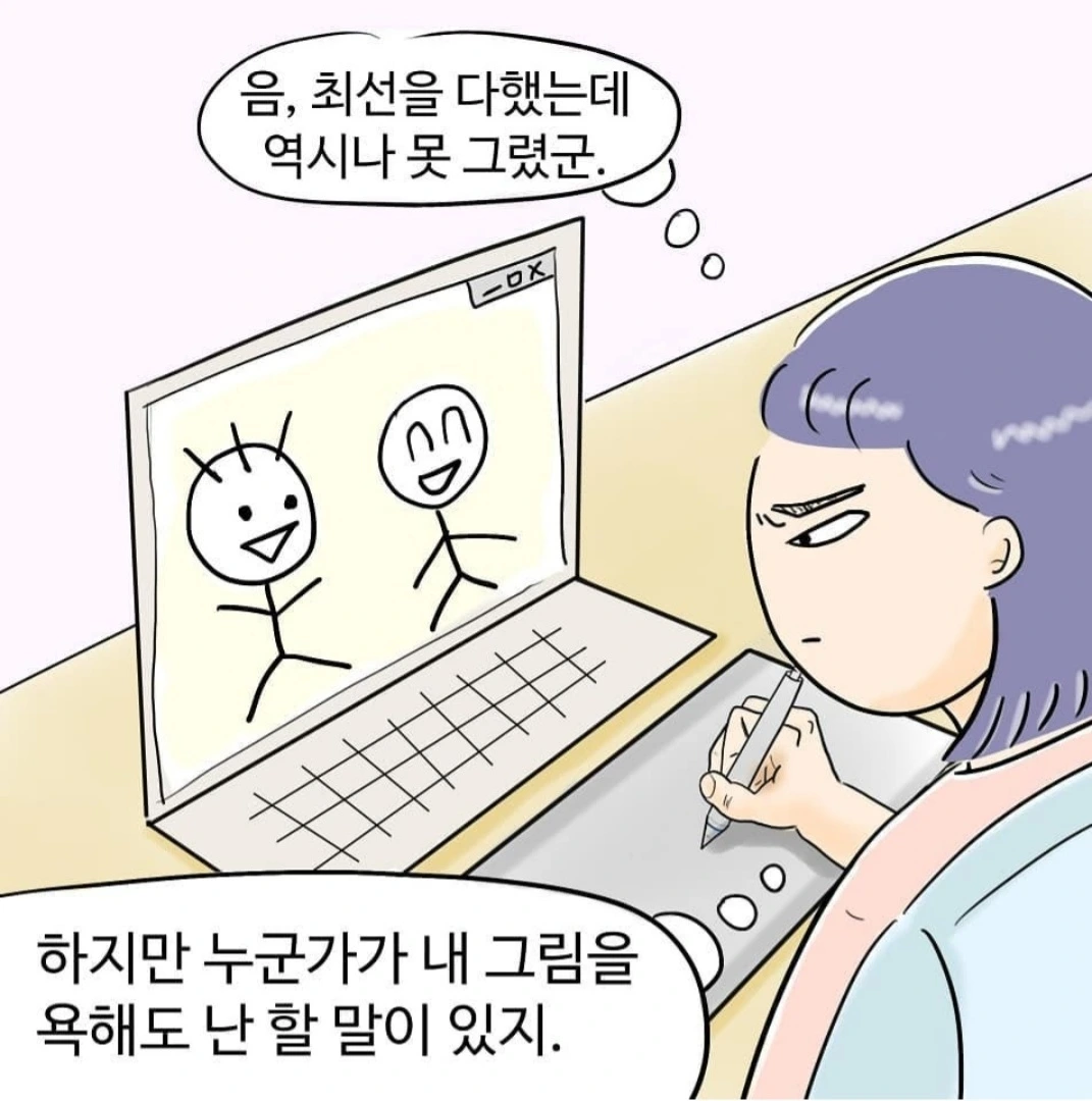 '음, 최선을 다했는데 역시나 못 그렸군. 하지만 누군가가 내 그림을 욕해도 난 할 말이 있지.'