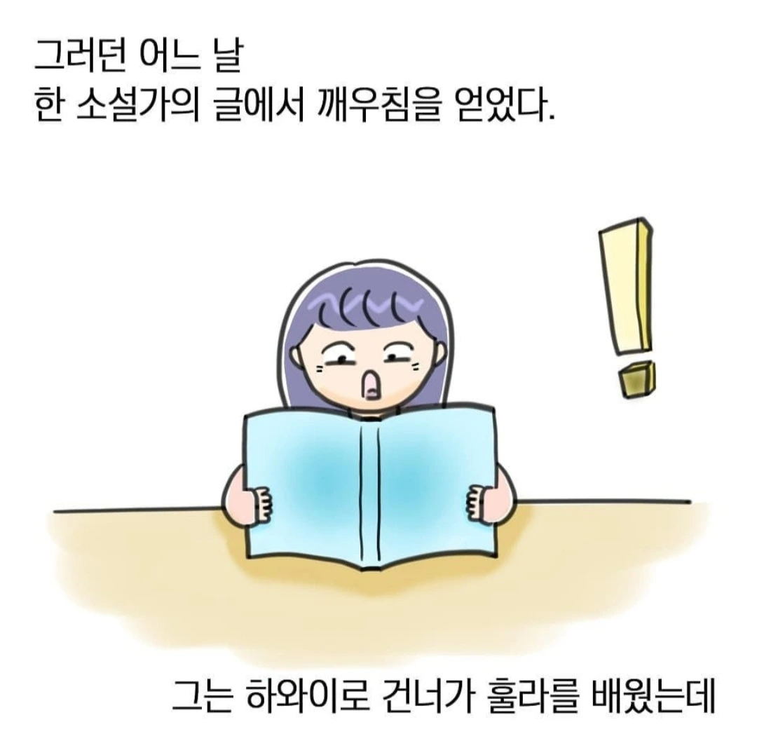 그러던 어느 날 한 소설가의 글에서 깨우침을 얻었다. 그는 하와이로 건너가 훌라를 배웠는데