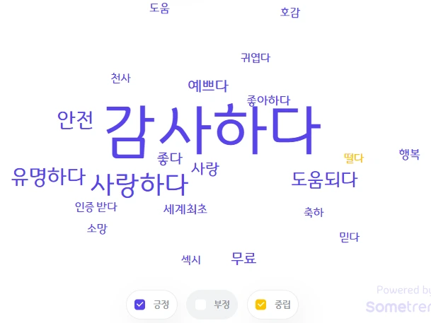 빅데이터창에 '유기견'을 검색하면 파란색 긍정어와 빨간색 부정어가 혼재되어 뜨는데, 긍정어 비율이 72%로 압도적이다. 압도적인 긍정어 중에서도 가장 압도적이었던 언어는 "감사하다"였는데, 나는 이 언어의 주인이 누구일까에 관하여 생각했다.