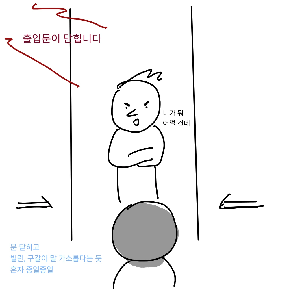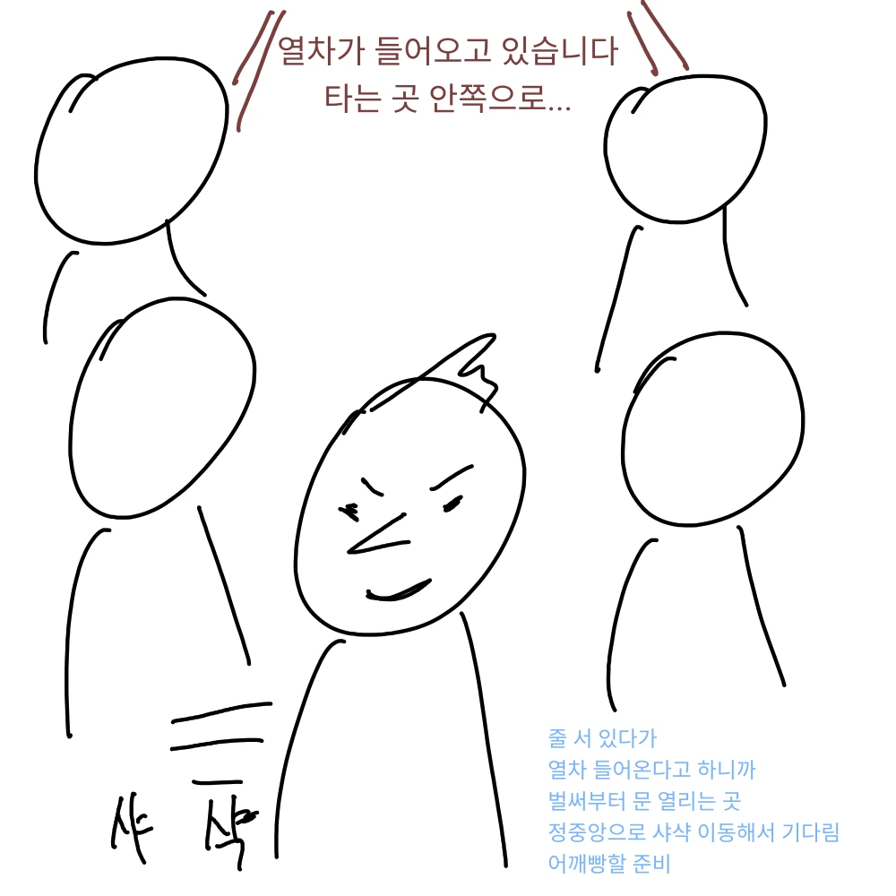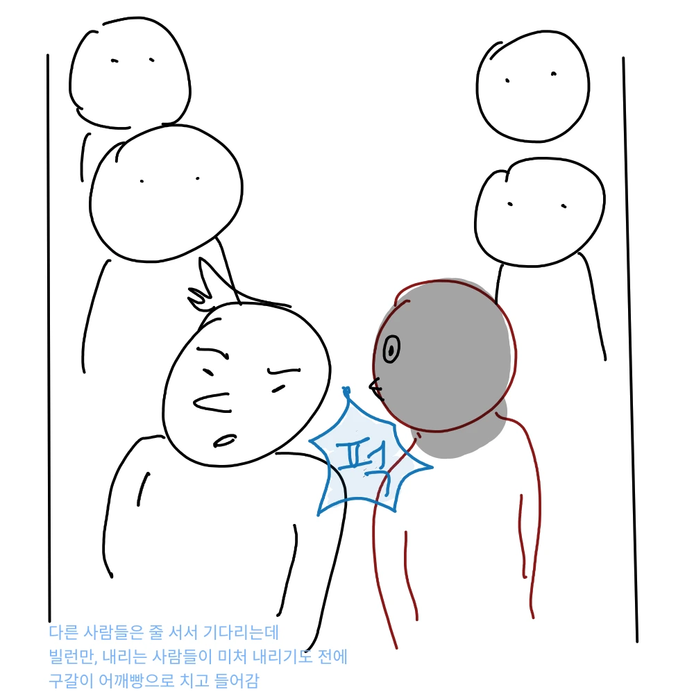 강한 자만이 살아남는 지하철에서 강한 자에게 맞서는 법, 이랄까. 이에는 이 눈에는 눈. 어깨에는 어깨!!