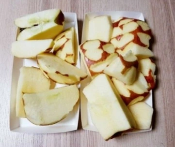 김뚜루가 내돈내산 사과를 사서 직접 깎은 사과. 솔직히 난 사과 진짜 잘 깎는데!! 이렇게 깎는 게 더 어려웠음ㅋㅋㅋ