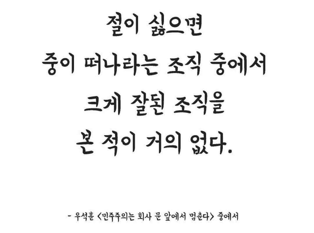 내가 끔찍이 싫어하는 업무 소통방식이 '탑다운'이다. 기자들은 매일 또는 주간 단위로 어떤 아이템을 취재할지 부장에게 보고한다. 그런데 뉴스는 생물이라 나의 의지와는 관계없이 반드시 다뤄야만 하는 현안이 있다. 혹은 다루지 않아도 되는데 굳이 부장 또는 그 윗선의 주관적인 판단으로 "그냥 짧게 하나 쓰자"는 식으로 업무를 할당받기도 한다. 하기 싫은 일도 억지로 해야 하는 게 회사원의 숙명이라지만 이런 탑다운 방식은 나의 뇌를 쪼그라들게 만들곤 했다. 흥이 나질 않으니 노트북 자판을 두드릴 맛도 나지 않았다. 이런 패턴이 반복되다 보면 어느새 머릿속을 꽉 채우는 생각은 하나뿐. 아, 빨리 퇴근하고 싶다...