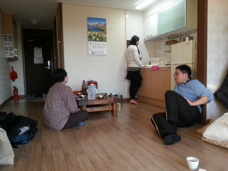 우리는 속초 연수원(308호)으로 가서 짐을 풀었어. 할머니와 큰 아빠는 건물 내 산책을. 엄마와 아빠는 북카페에서 책을 조금 읽었어.