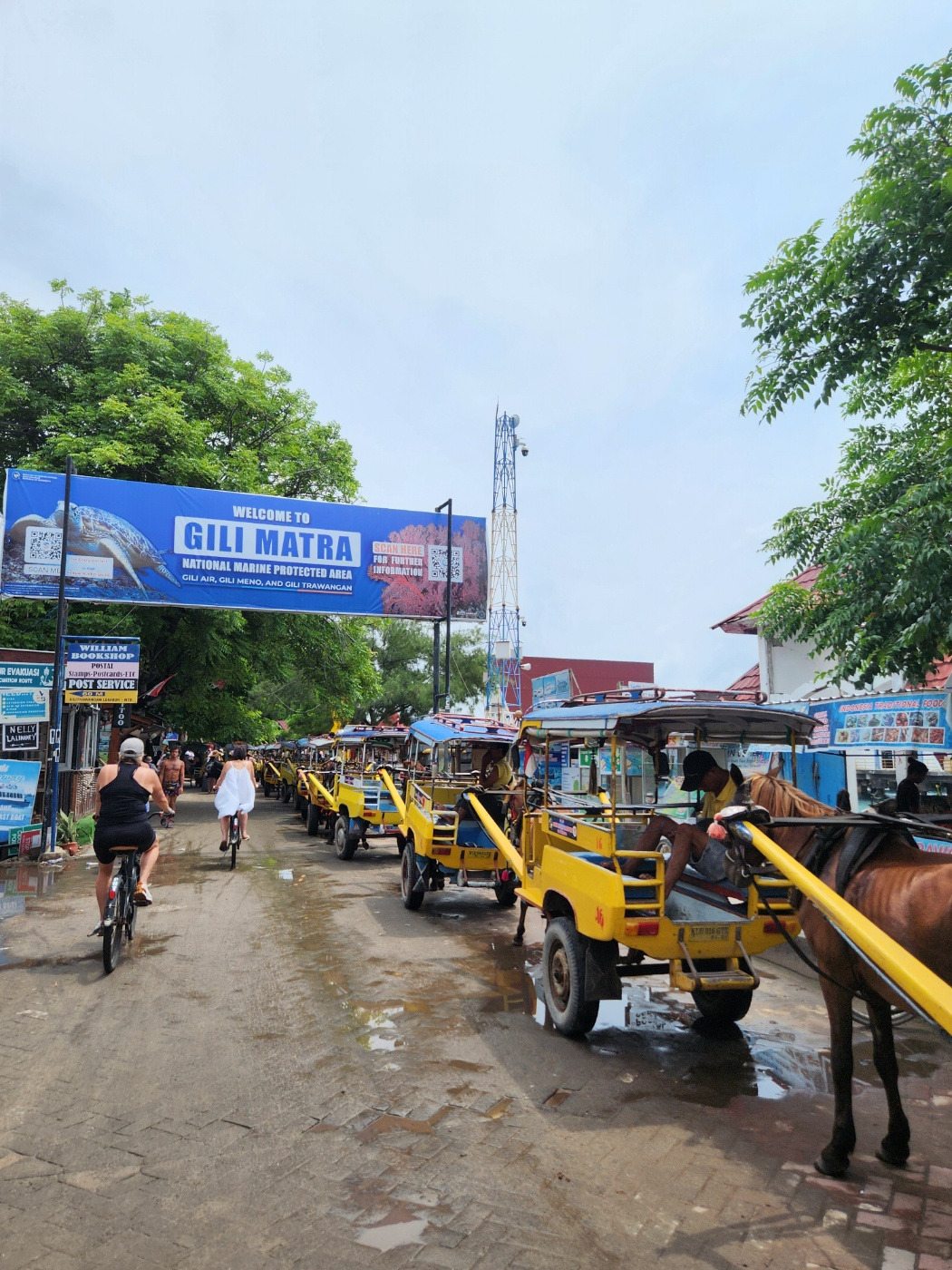 배를 타고 2시간 정도 달리자, 바다의 빛깔이 점점 에메랄드색으로 변하기 시작했다. 길리 트리왕안에 당도한 것이다. 목적지에 대한 공부라곤 하나도 해두지 않은 탓에, 도착마자마자 어리둥절한 상태로 입도세 20k루피아(한국 돈 약 1,600원)를 뜯겼다. 항구를 벗어나자, 이번엔 치모도(말마차) 흥정꾼들의 타깃으로 노려졌다. 그때서야 깨달았다. 이 섬에는 차도, 스쿠터도 다니지 않는다는 사실을.