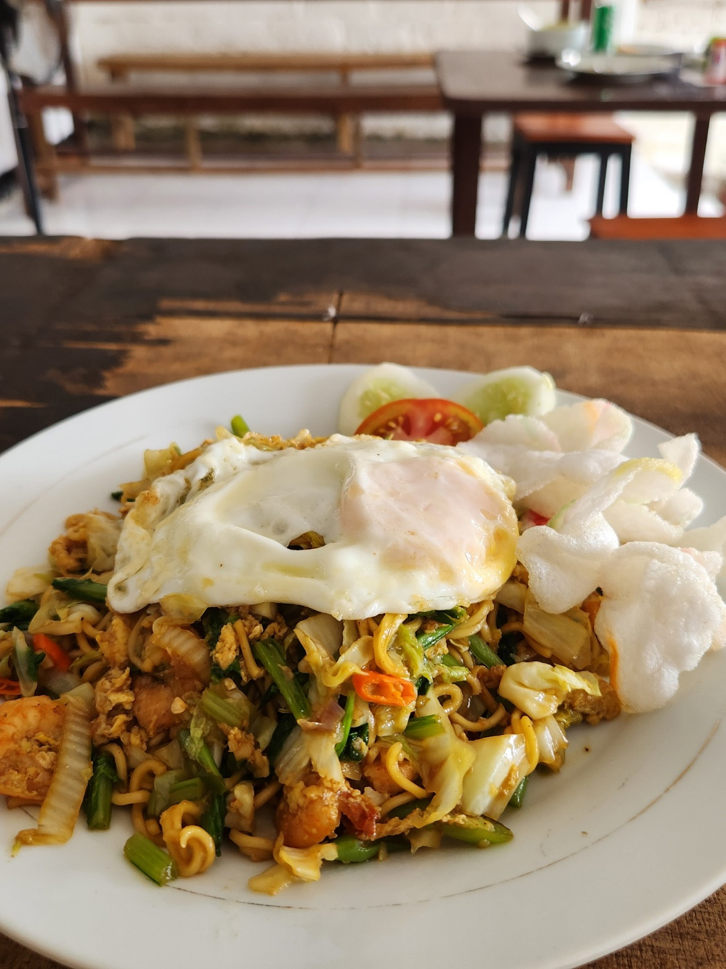 배고픔과 더위에 지쳐 있는 상태였기 때문에, 숙소 근처 아무 식당에나 들어갔다. 음식을 시키고 멍하니 기다리는데, 눈앞으로 염소 무리가 지나가는 것을 보고 킥킥 웃음이 새어 나왔다. 말 다음에 염소라니. 구경하는 재미가 있는 동네였다. 파리와 싸우며 먹은, 길리에서의 첫 식사였던 미고랭은 꽤 맛있었다. 함께한 시원한 맥주 한 잔이 이때의 나를 살렸다.