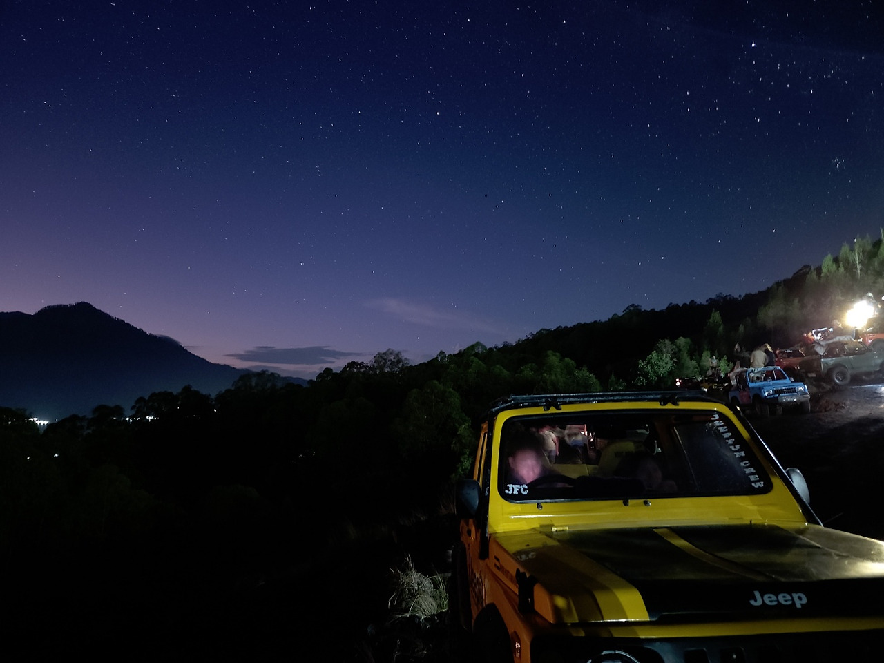 이틀 전 우연한 만남을 가졌던 Y언니까지 픽업해, 지프로 갈아타고 꾸불꾸불 산길을 올라갔다. 어느 정도 올라가다 보면 일출을 보러 온 수많은 지프차들의 행렬이 시작된다. 가로등 하나 없는 산길인데도 자동차 조명 때문에 전혀 어둡지 않았다.