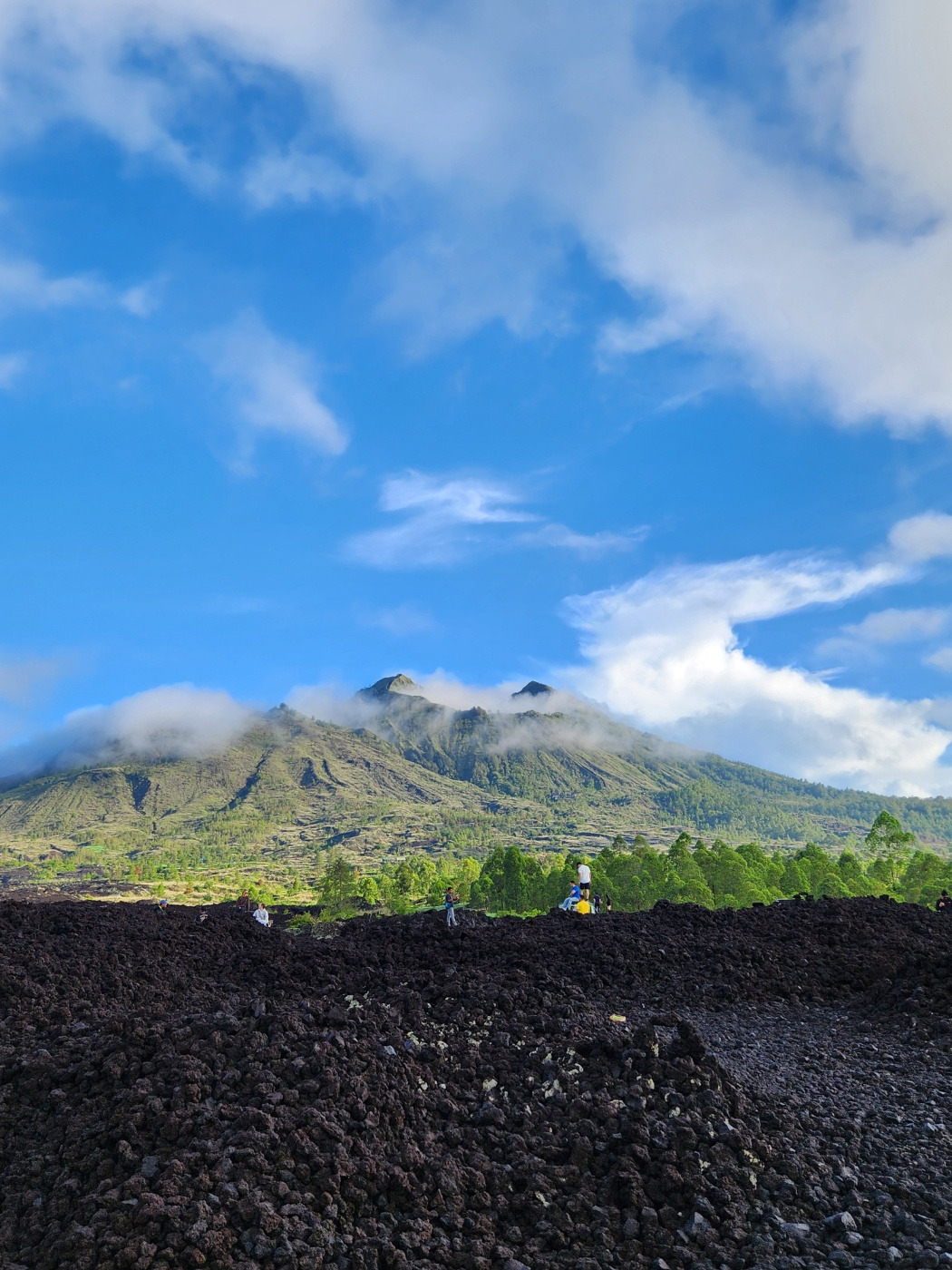 내려가는 길에는 화산 폭발의 흔적이 남은 구역에 들렀다. 저 까만색 돌들이 다 용암이다. 뜨거운 열기가 아직 남아있는 걸까. 유독 덥고 뜨겁고, 한쪽에선 파리가 들끓었다. 바로 뒤 아궁산이 너무 푸르러 대비가 더 크게 느껴졌다. 죽은 땅과 살아있는 땅이 바로 맞닿아 있는 모습이 비현실적이면서 지극히 현실적이었다.