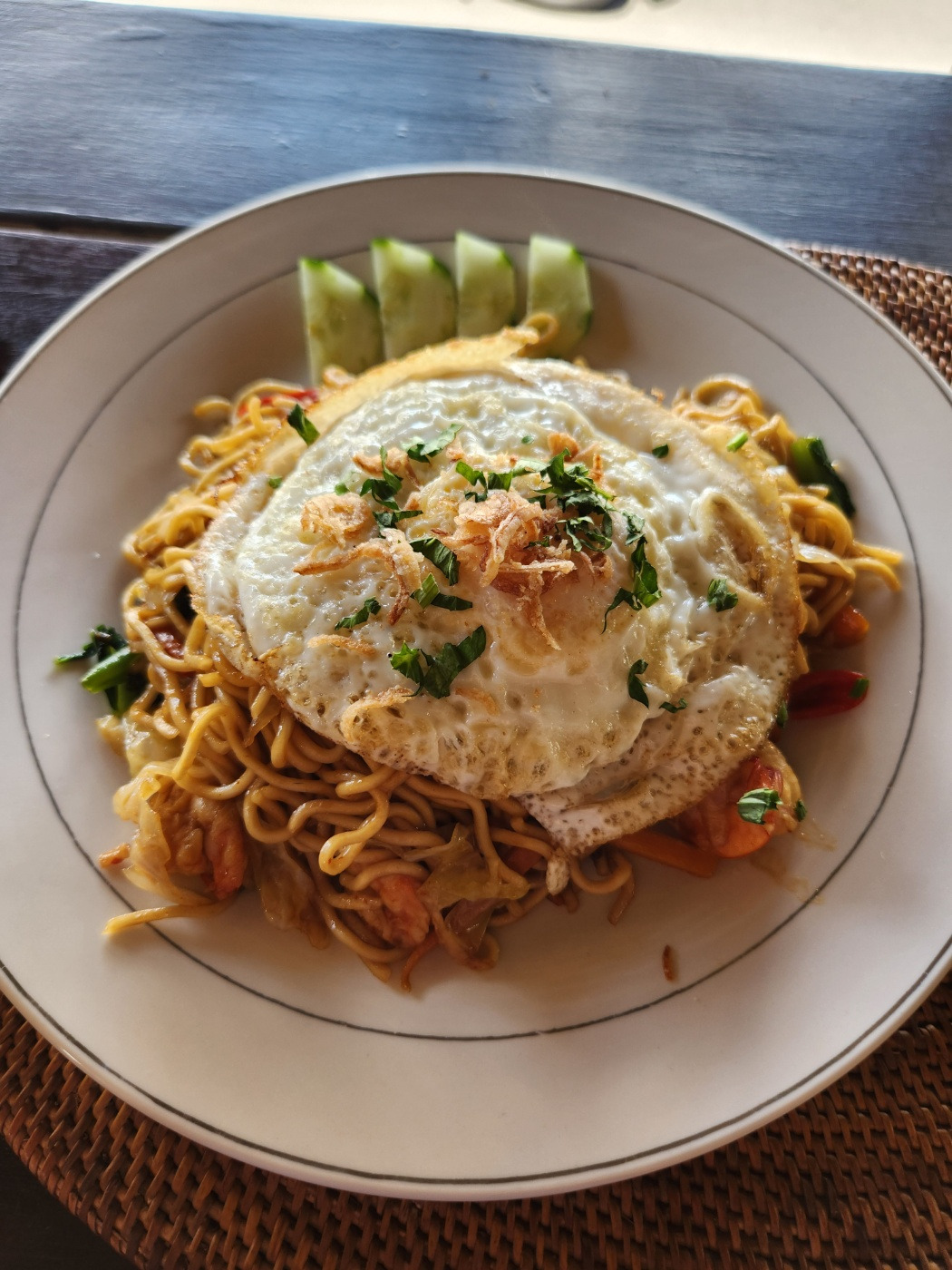 졸림보다 배고픔이 더 앞섰기 때문에, 시내에 도착하자마자 식당에 들어갔다. 숙소 바로 앞에 위치한 식당이었는데 구글 평점이 좋길래 눈여겨보고 있었다. 그리고, 미고랭을 한 입 먹은 순간 깨달았다. 이 집, <엔젤와룽>은 맛집이라는 사실을. 우붓에 있는 동안 무조건 한 번 이상 더 와야 하는 곳임을! 숙소 바로 앞에 이런 곳이 있다니, 정말 행운이었다. 발리에서 수많은 미고랭을 먹었지만 엔젤와룽의 미고랭을 이긴 곳은 과거에도, 미래에도 없었다.