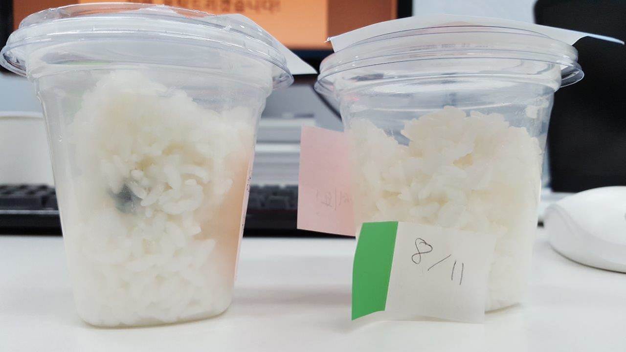 그날 집에 가서 실험을 해 보고, 2주일 후에, 나에게 썩은 밥 사진을 보내 주었다.