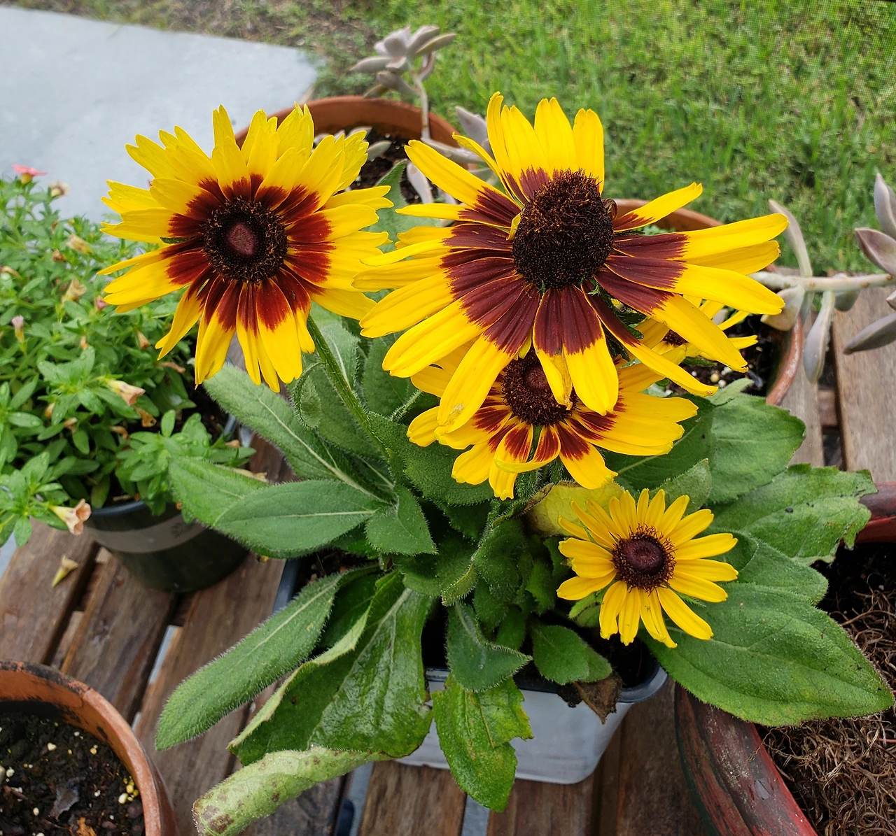 그리고 이곳의 다른 사람들처럼 우리도 집안의 작은 것들은 재료를 사다가 고치고, 만들고.... 그러다 보니 홈디포에 자주 가게 되었고, 어느 날은 홈디포에 갔다가 가든 코너에 들렸는데 너무 예뻐서 도저히 그냥 올 수가 없었다. 남편은 좋아하는 해바라기가 없어 대신 비슷한 루드베키아, 그리고 나는 사실 지금도 이름이 잘 기억하기 어려운 핑크색 꽃을 데리고 왔다. 아일랜드에 올려놓고 아침마다 남편과 커피 한잔 마시며, 파릇한 잎과 예쁜 꽃을 바라보는 일이 나를 너무 행복하게 했다. 아침에 일어나 커튼을 열고, 남편은 커피를 갈고, 나는 모카포트 준비하며 커피잔을 데우고.... 커피 한잔 마시며 꽃을 감상하고.... 2주마다 갓 로스팅한 다양한 커피를 배달받아 마시며 맛을 논하고.... 팬데믹이 우리에게 가져다준 여유이다. 하지만 이미 다 예쁘게 펴버린 꽃을 데리고 왔으니 며칠을 만끽했을까... 이내 지는 모습만 봐야 했다는.....