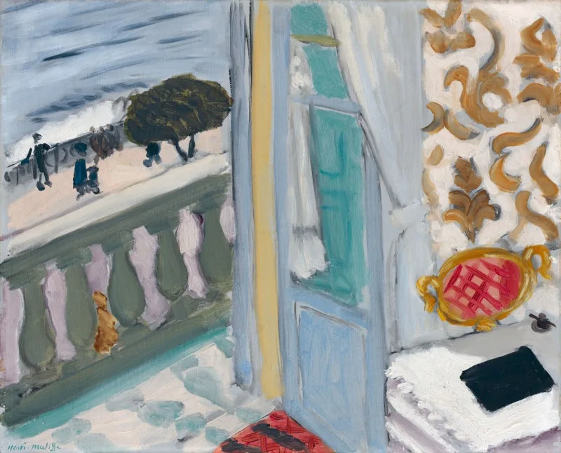 이 시기의 작품들은 창문을 통해 바라본 해안 풍경이 담겨진 구도로 표현되어 있습니다. 애메랄드 색과 차가운 푸른색의 다양한 계열로 표현된 바다, 붉은색과 보라색의 실내 장식들이 배경색과 보색관계를 이루면서 그 색들 사이의 날선 경계선을 부드럽게 이어주는 창문틀의 파스텔 톤으로 조화롭게 어우러져 있죠. 그래서인지 이 시기의 작품들은 마티스가 외부 세계의 아름다움과 내면의 평화를 어떻게 조화시켰는지 호기심을 갖게 합니다.