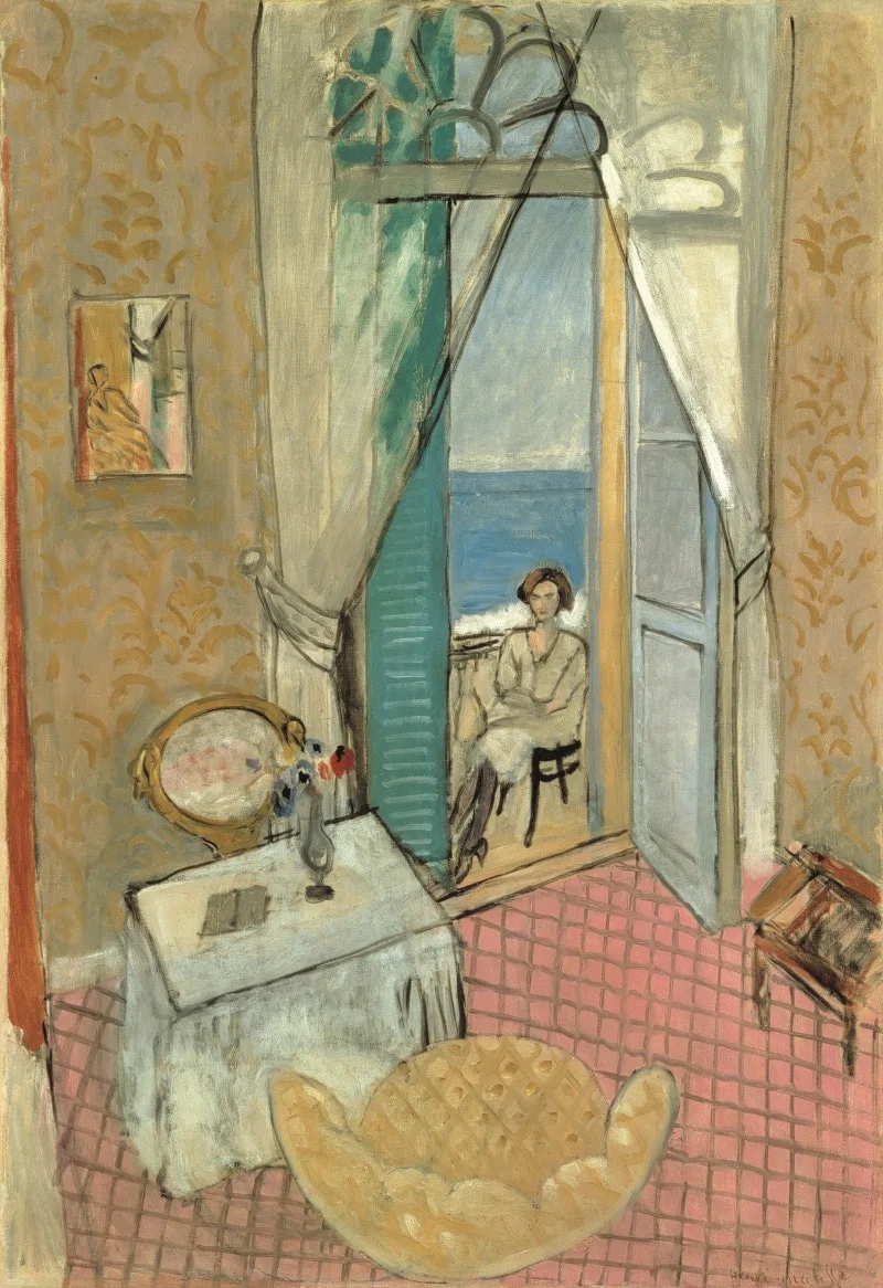 세월이 흘러 40대에 마티스는 프랑스 남부 지중해 해안에서 많은 시간을 보내게 됩니다. 1917년부터 1930년대까지, 그가 주로 머물렀던 니스 시기는 마티스에게 특별했던 것으로 알려져 있습니다. 실제로 그 시기의 작품들을 보면 여성과 바다를 주제로 다루는 파스텔 톤의 색감들이 마티스만의 행복한 감성을 잘 보여줍니다. 그가 머문 곳은 니스 해안가였고, 유럽에서 인기있는 휴양지였을 겁니다. 실제로 니스 해안에는 호텔들이 많았고, 마티스는 그 중의 한 곳에 머물면서 집중적으로 작품 활동을 했으니까요.