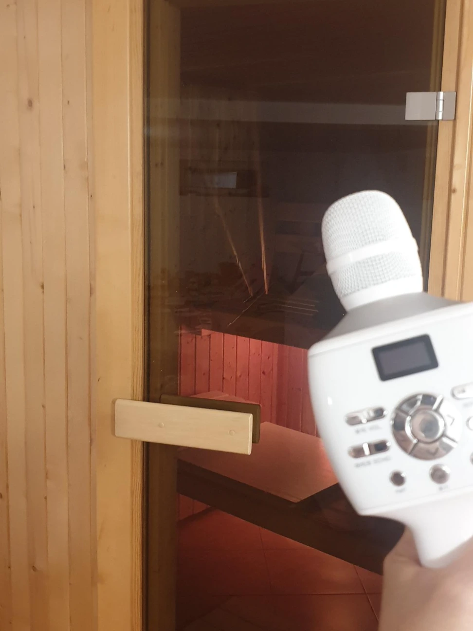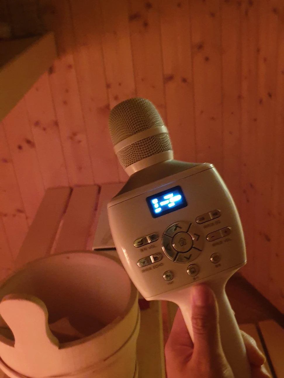그런데 남편이, 노래방을 정말 좋아하고 사랑하는 남편이, 어떻게 하면 아이들의 등쌀을 피해 마음껏 노래를 부를 수 있을까 궁리하다가 노래를 하기 위한 최적의 공간을 발견하였다. 그건 바로 우리 집 지하에 있는 사우나. 전형적인 북유럽의 주택 구조를 따르고 있는 우리 집 지하에는 약 1평 정도 되는 목재 사우나 룸이 있는데, 온도의 방출을 막기 위한 두터운 벽 덕분에 이곳은 의외로 방음효과가 뛰어난 공간이었던 것이다. 이 안에 들어가서 노래를 부르면 밖에서, 특히 생활공간이 있는 1층이나 2층에서는 개미 소리만큼도 목소리가 들리지 않는다. 게다가 코인 노래방 같은 밀폐된 느낌은 덤. 그야말로 노래방 시스템을 위해 존재하는 공간이라 해도 과언이 아니었다.