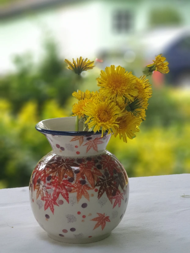나름 운치있는 민들레 화병이 완성되었다