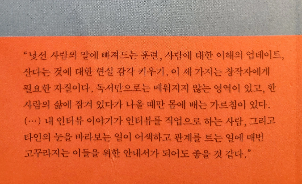 독서만으로는 메워지지 않는 영역이 있고, 한 사람의 삶에 잠겨 있다가 나올 때만 몸에 배는 가르침이 있다. 사흘 전, 서울국제도서전 제철소 부스에서 만난 은유 작가님의 신간 <아무튼, 인터뷰>의 책 표지에서 발견한 문장이다. 2025년 6월 18일이라고, 그날의 날짜가 초판인쇄일로 찍혀 있는 이 갓 태어난 책을 나는 장바구니에 담아올 수밖에 없었다. 책으로는 끝끝내 알 수 없는 인생의 진실. 나는 그것을 양육에서 배웠다.