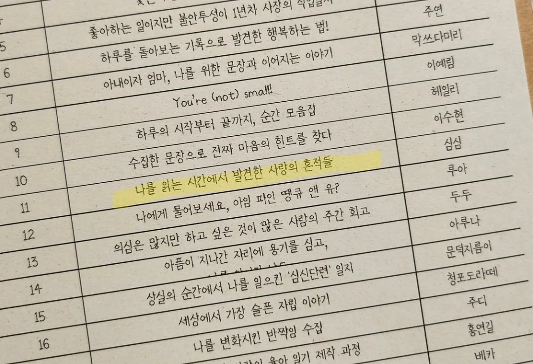 그리고 그 감정은 예상보다 깊고 묵직했다. 편집과 회고의 과정은 모닝페이지를 쓰는 시간과는 또 다른 경험이었다. 과거의 내가 썼던 문장들이 지금의 나를 위로했고, 현재의 나를 다시 앞으로 나아가게 하는 힘이 있었다. 잊고 지냈던 마음의 결을 따라가다 보니, 과거의 나는 내 기대보다 훨씬 더 솔직하고 단단한 사람이었다. 반복되는 키워드, 비슷한 고민, 끝나지 않은 이야기들이 페이지마다 가득했다. 시간은 흘렀지만 마음의 패턴은 크게 다르지 않아서였을까. 내가 쓴 문장들이 결국 모두 나에게로 돌아왔다.