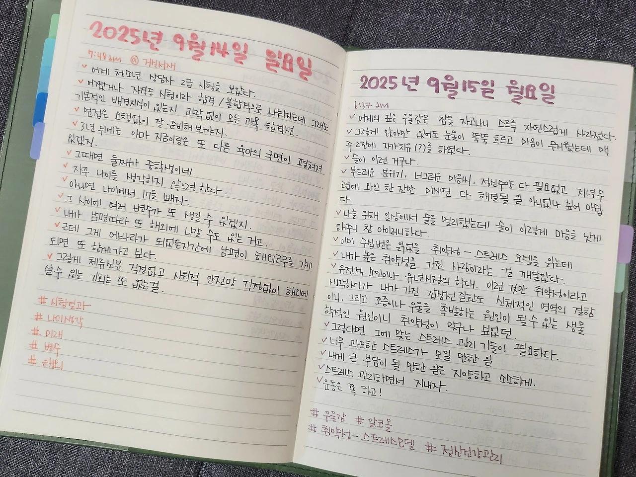 2020년부터 써 왔던 모닝페이지와 일기를 조금 더 본격적으로 회고해 봐야겠다는 생각이 들었다. 그 기록들을 훑어보고 싶어졌다. 지난 5년의 기록을 하나씩 펼쳐보고 싶어졌다. 아주 개인적이고 사적인 기록이지만, 이번 오프더레코드 전시의 방명록에 남겨진 "이런 글이 필요했어요."라는 댓글은 이런 나의 마음에 작은 불씨를 더했다.