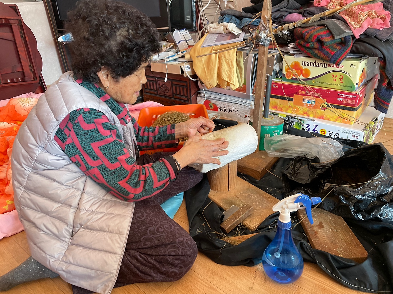 친구의 삼베 스승님은 평범한 우리네 할머니 같은 모습이었다. 꽃무늬 몸빼바지에 파마머리를 한 친구의 삼베 스승님(이하 할머니)은 우리가 방문했을 때 방 안에서 삼을 삼고 계셨다.