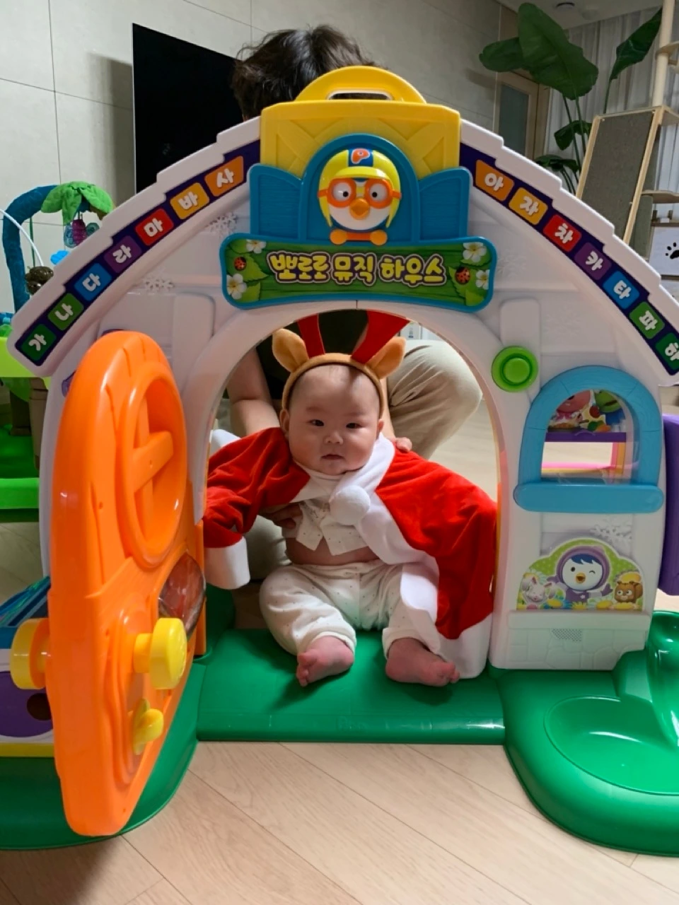 아빠가 울거나 때쓰면 산타 할아버지가 선물을 안주신다고 해서 앞으로 안그러겠다고 약속을 했지요!