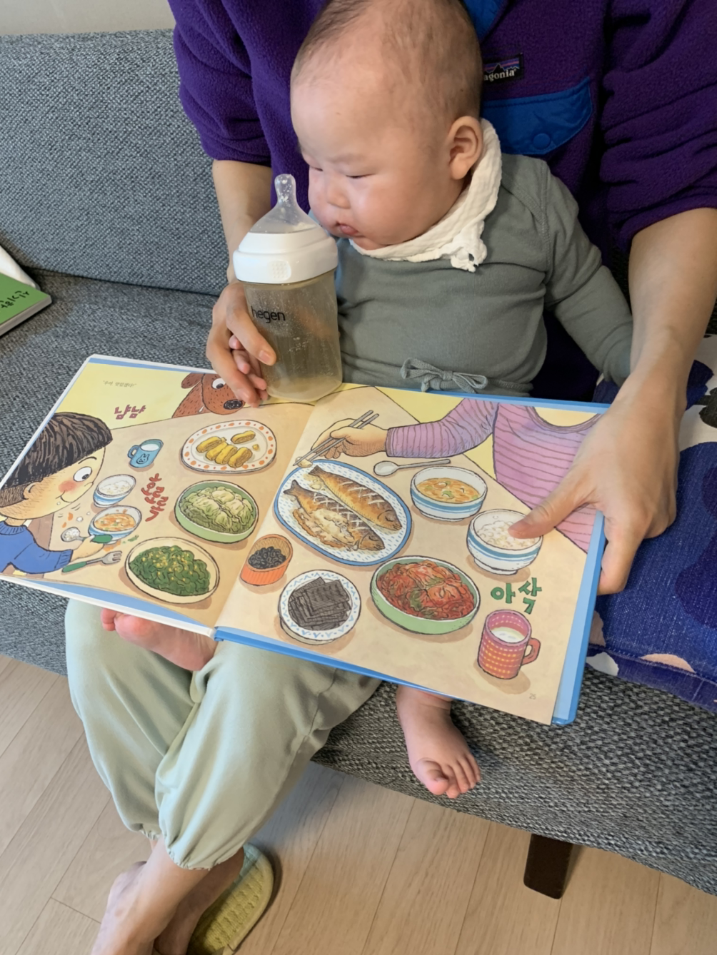 엄마는 밥먹자 책을 보여주시며