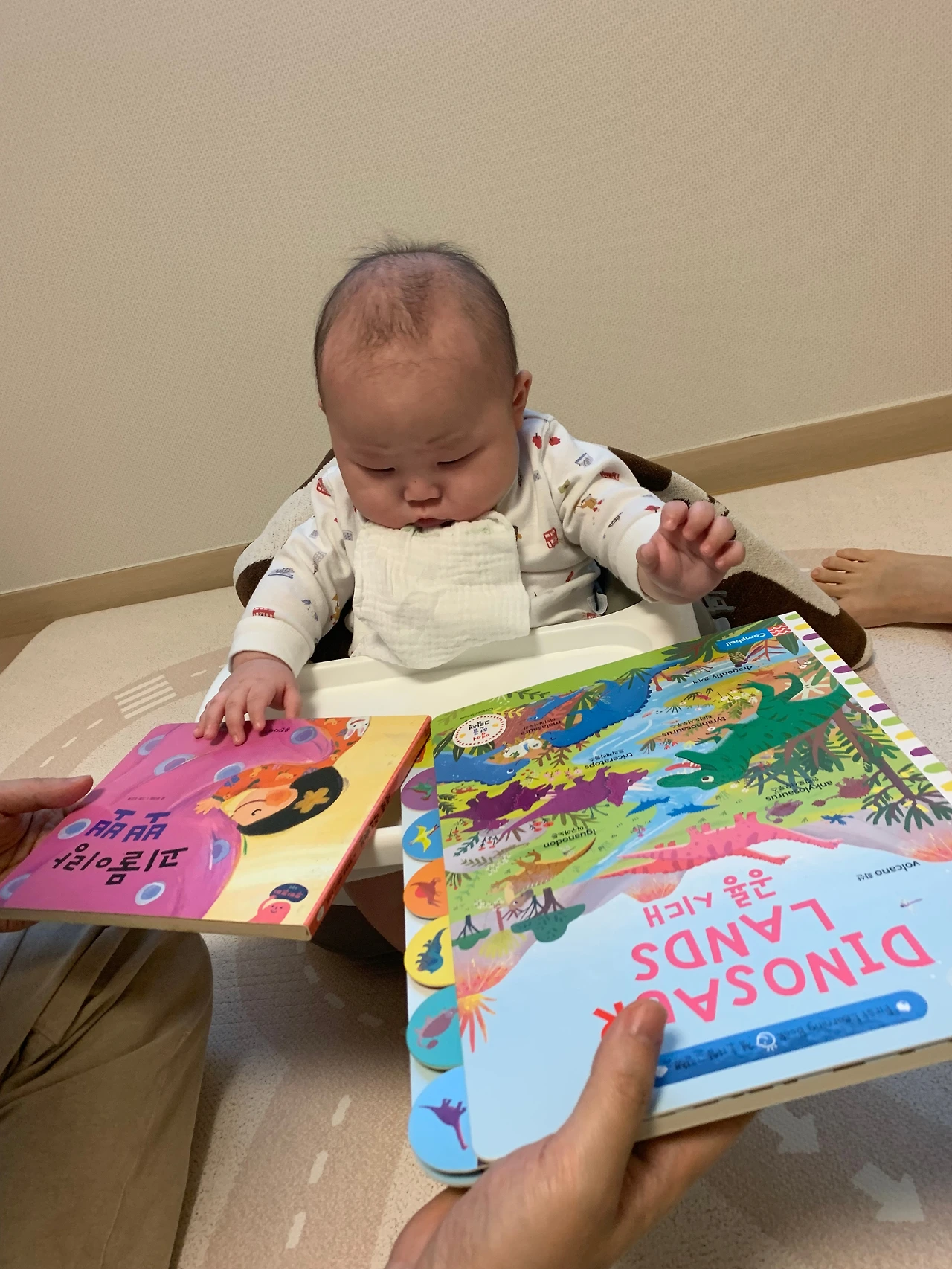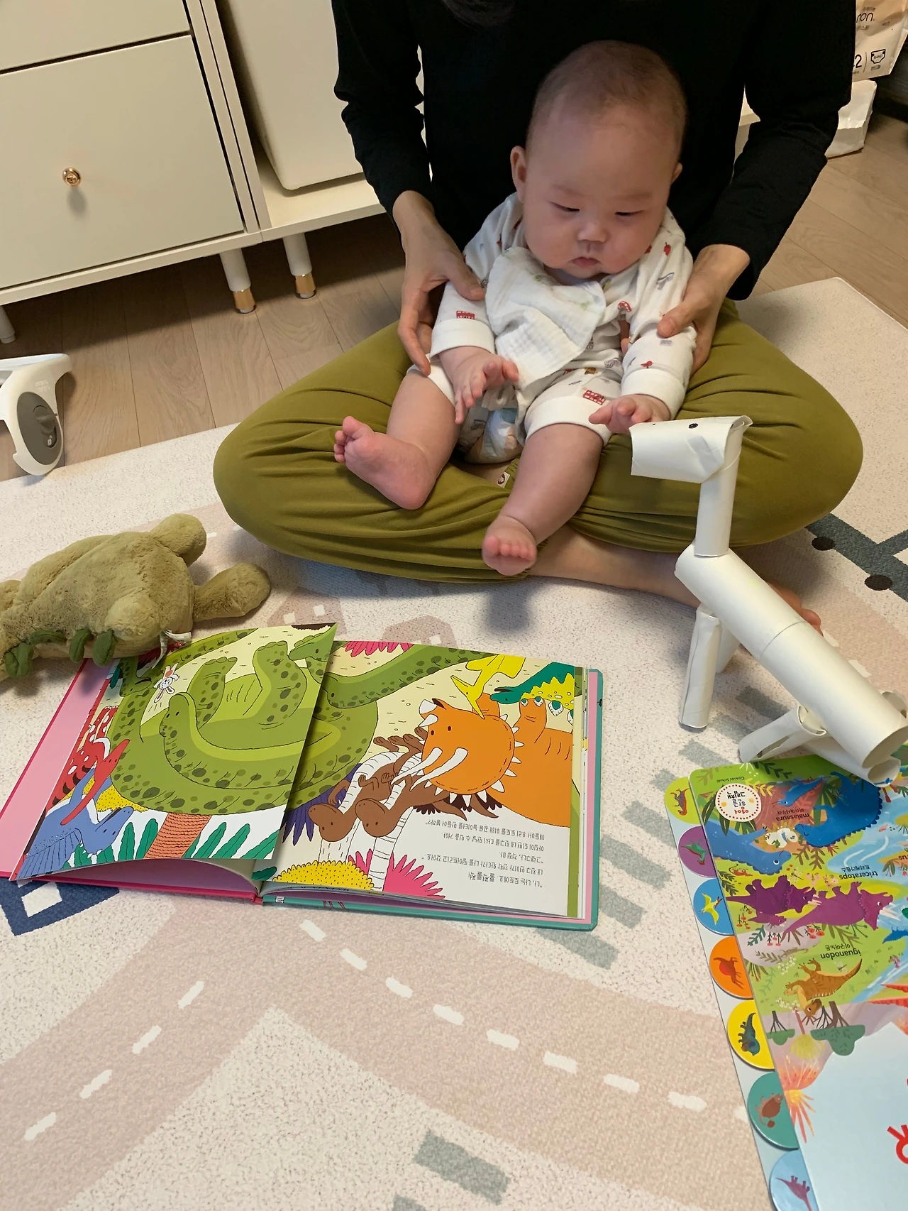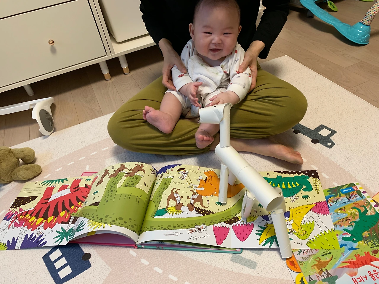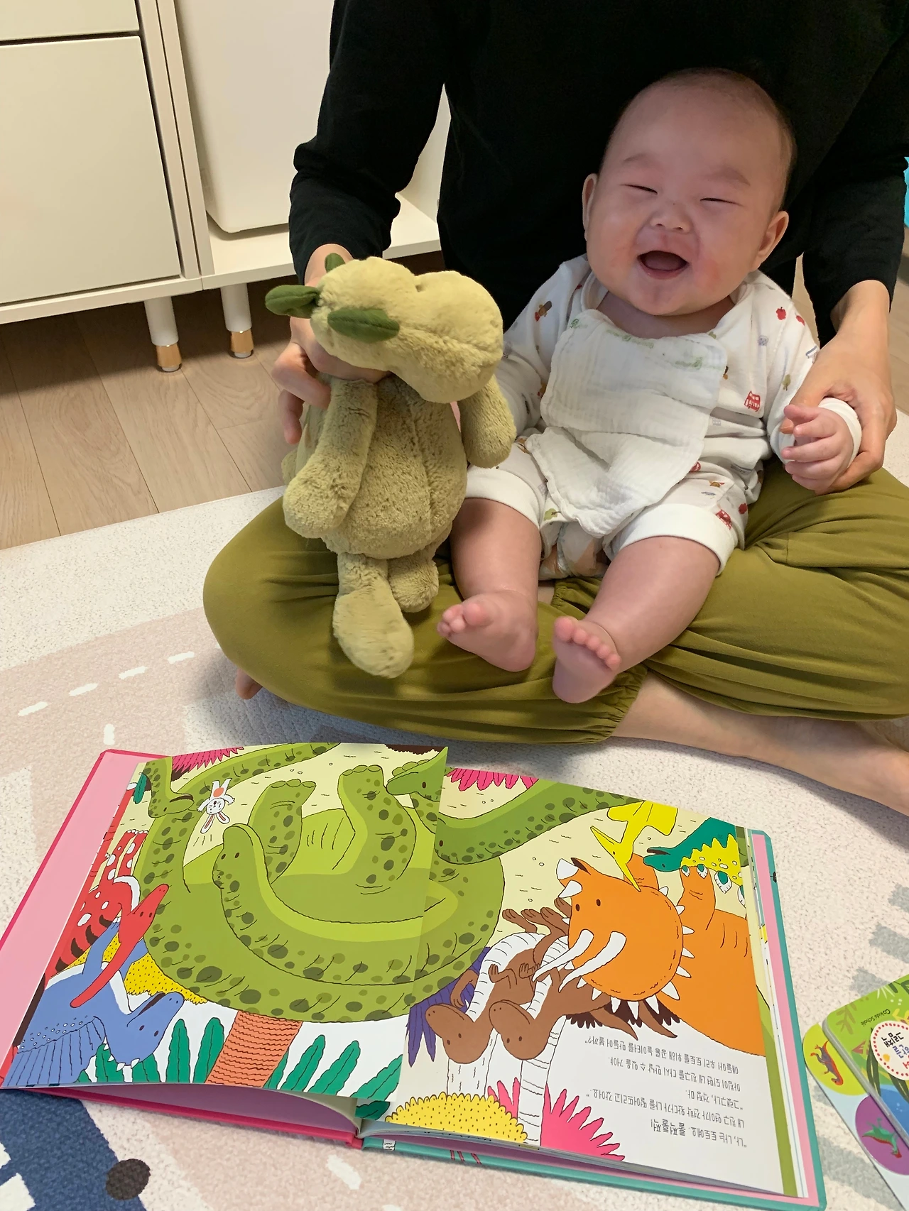 제가 공룡에 대해 더 알고 싶다고 하니 아빠가 맥밀란 '공룡시대'와 '괴물이랑 뽀뽀'를 골라주셨어요.