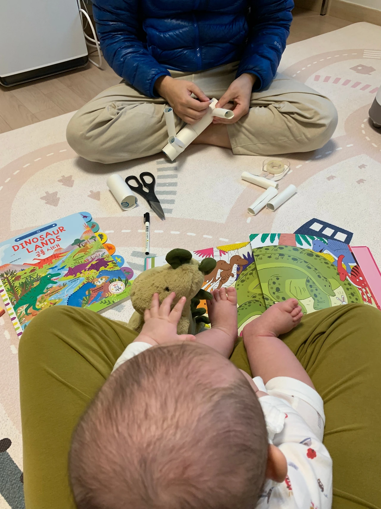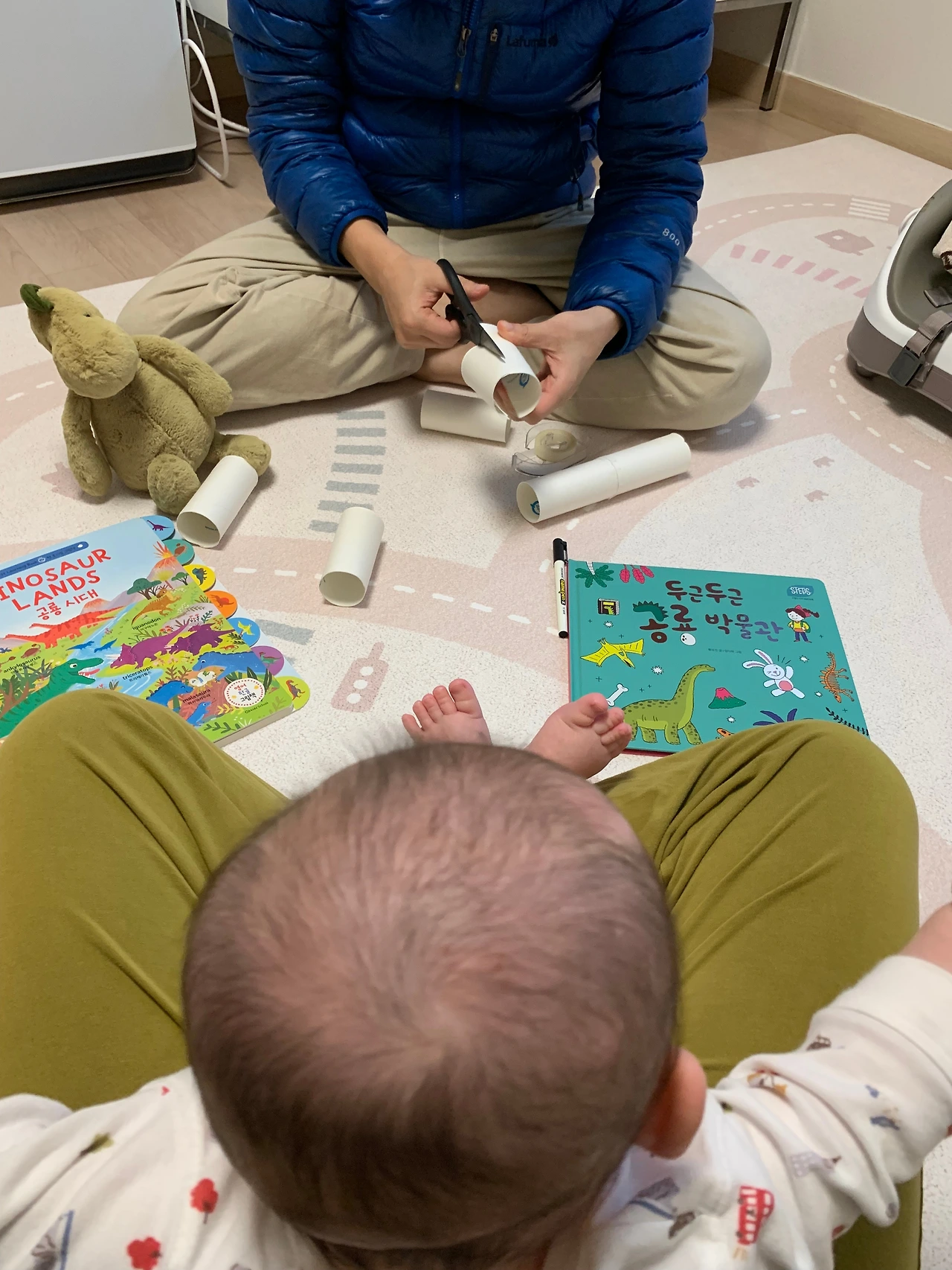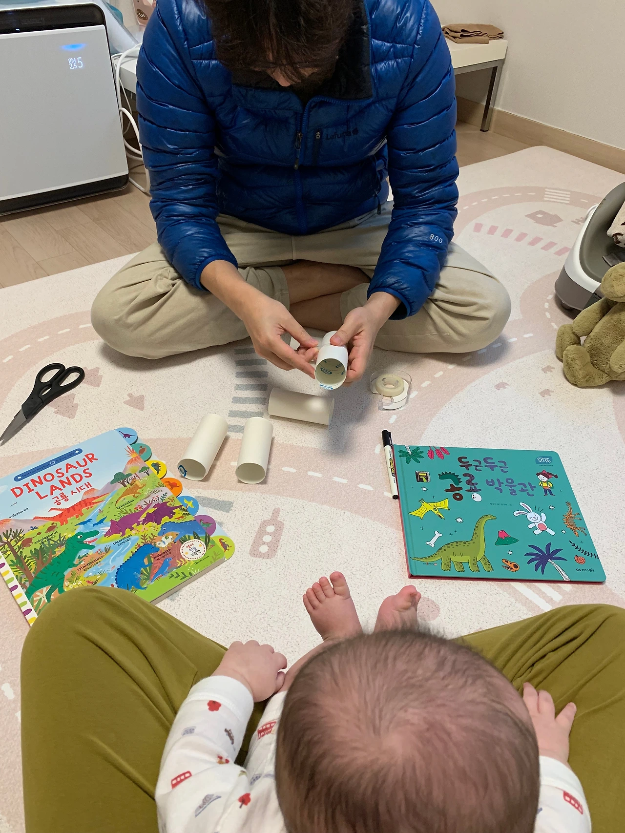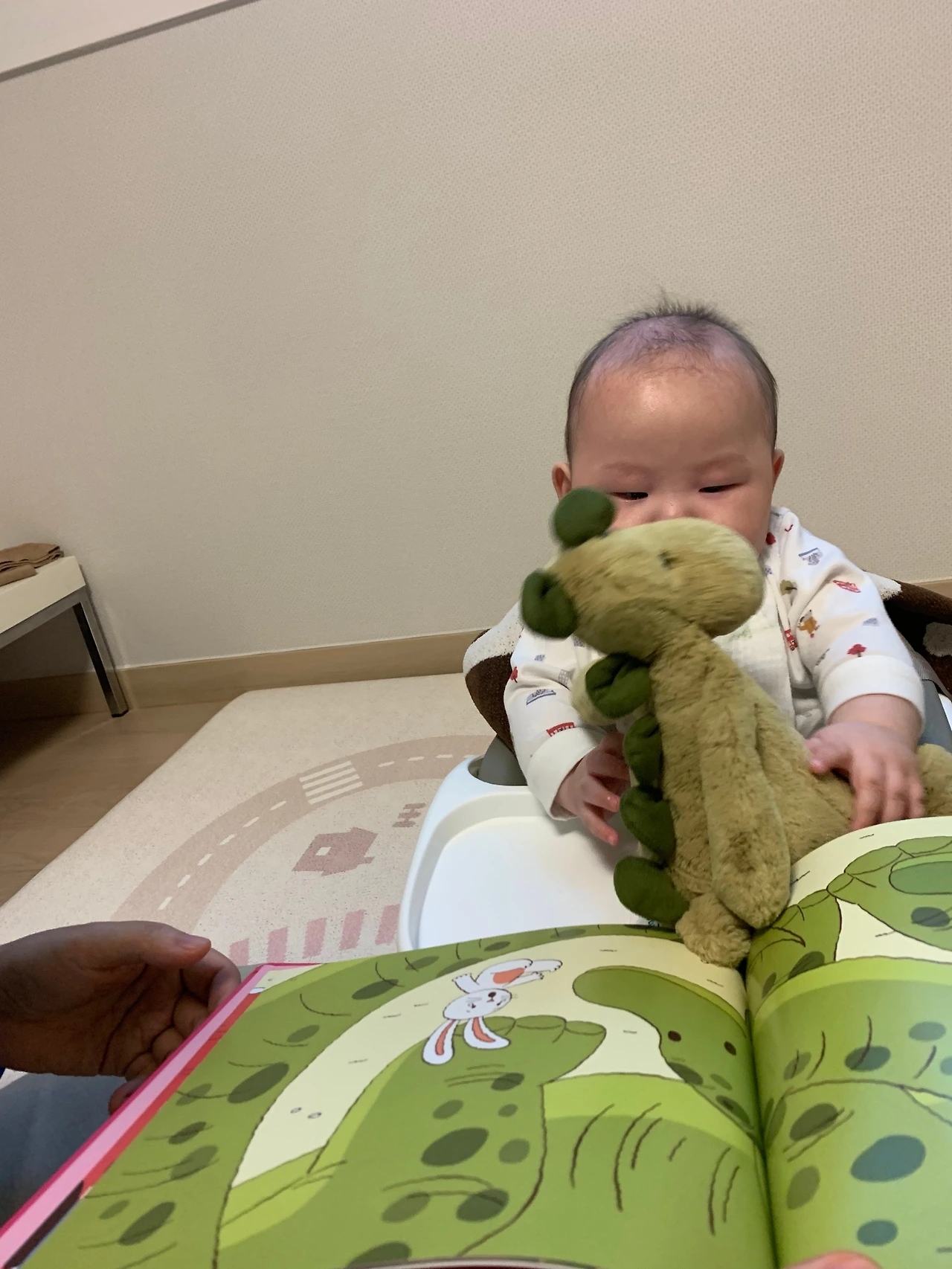 제가 공룡에 대해 더 알고 싶다고 하니 아빠가 맥밀란 '공룡시대'와 '괴물이랑 뽀뽀'를 골라주셨어요.