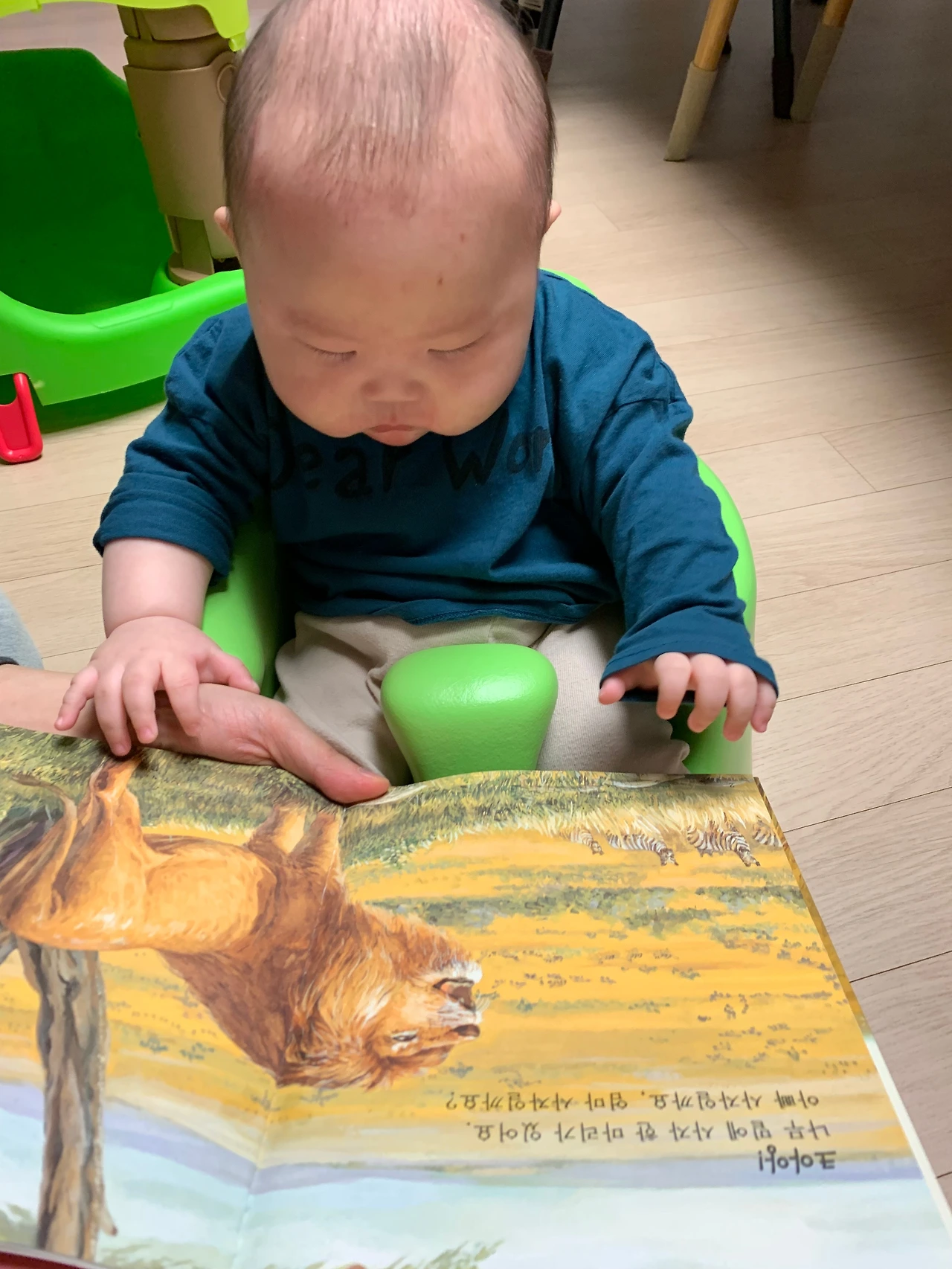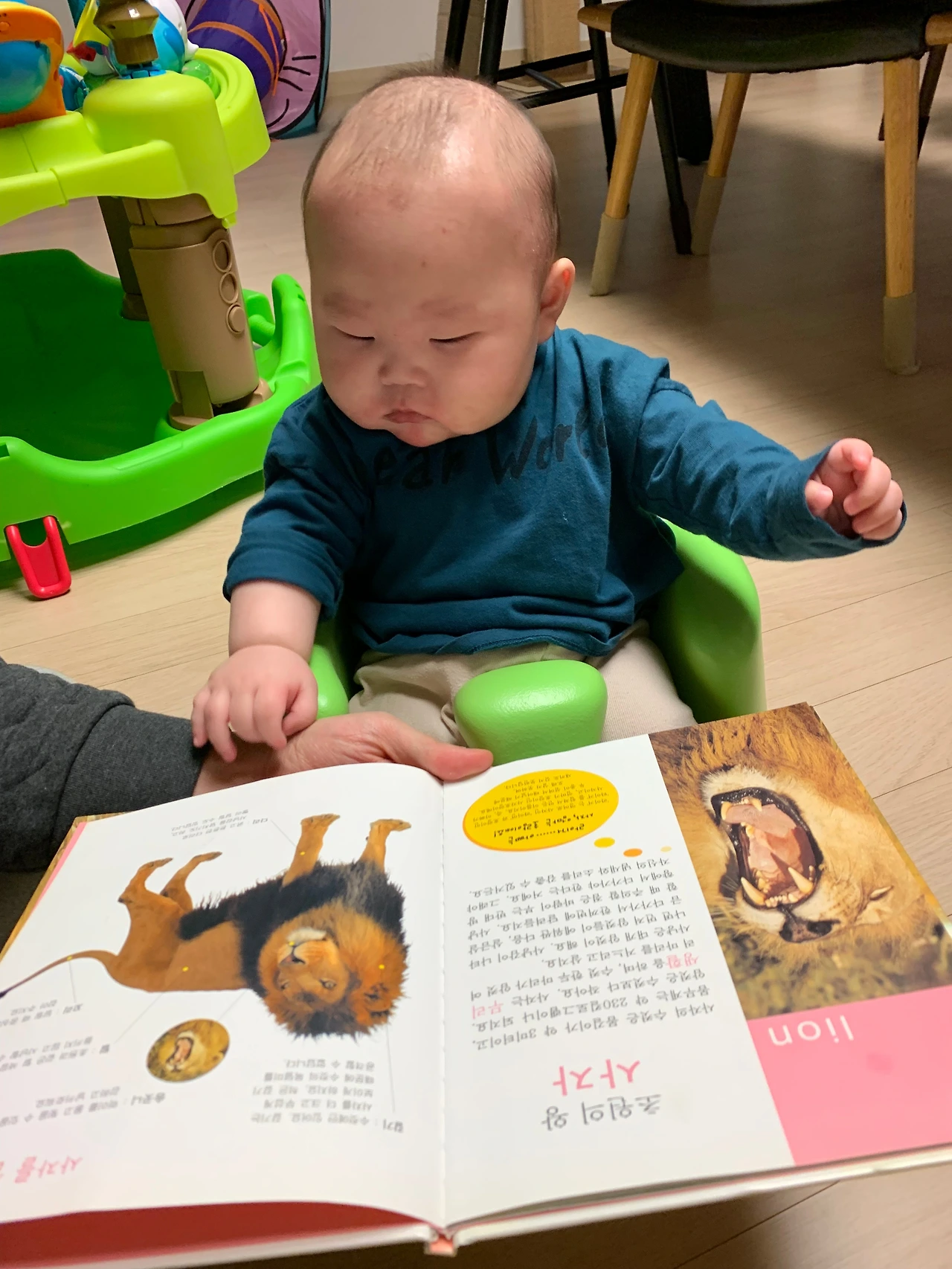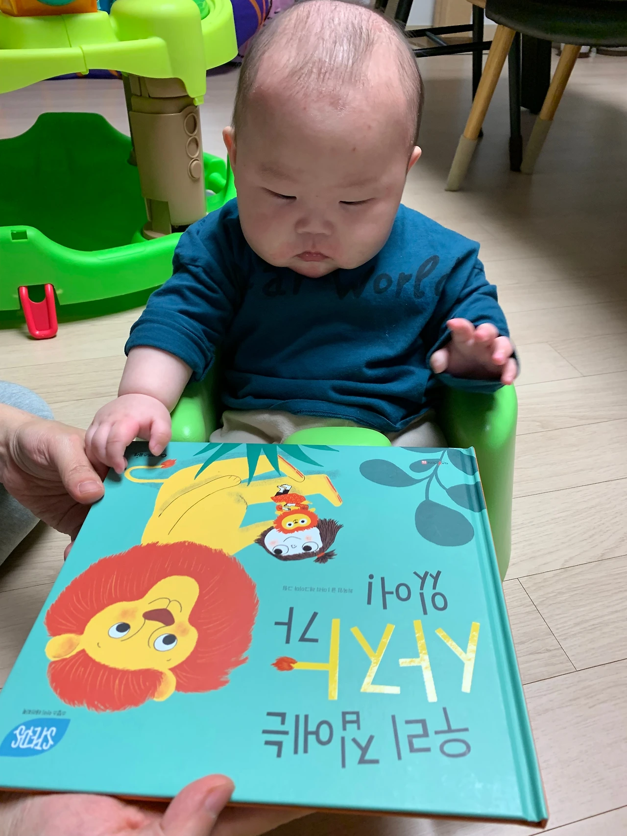 아빠가 사자를 가리키며 동물의 왕이라고 하네요!