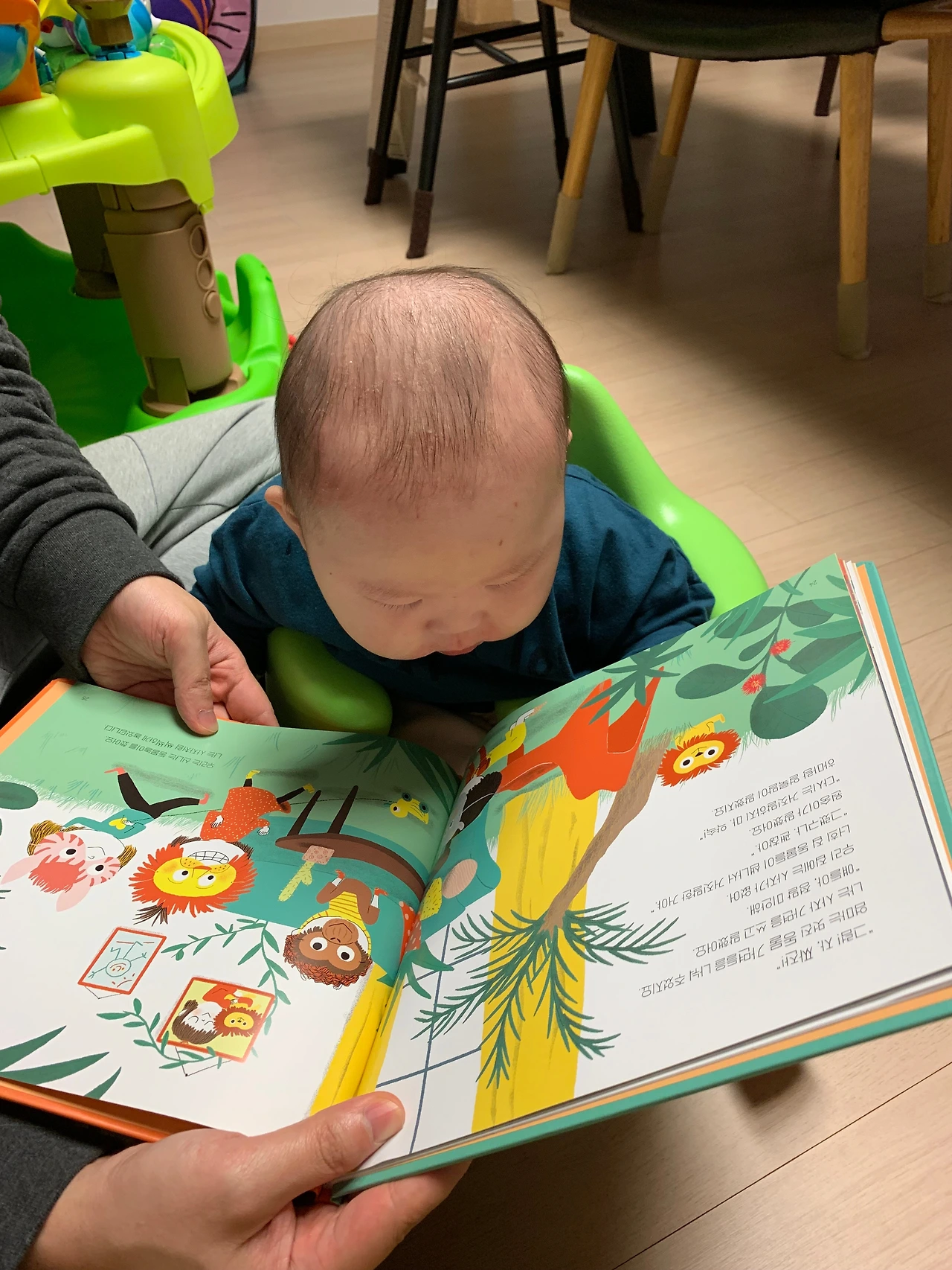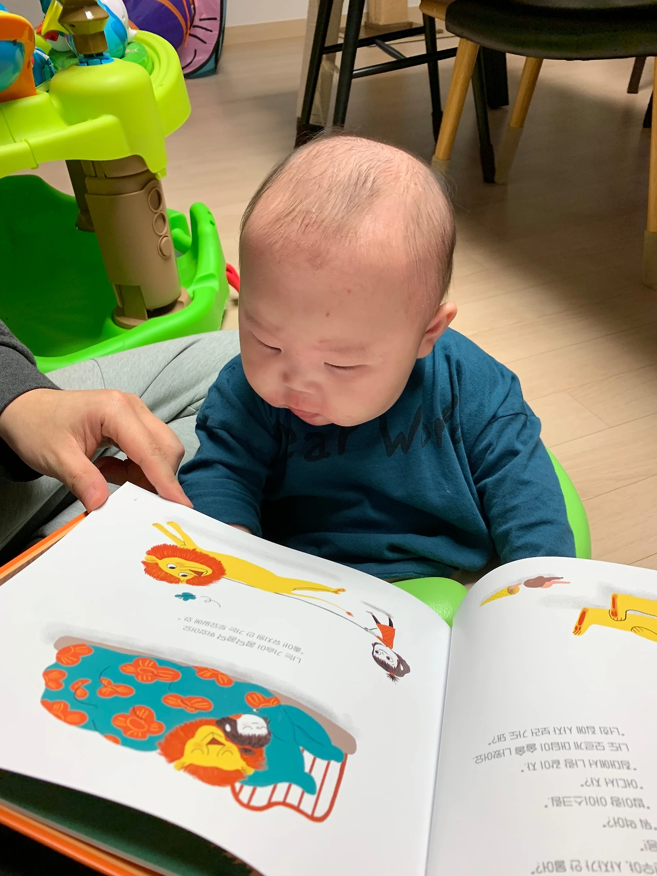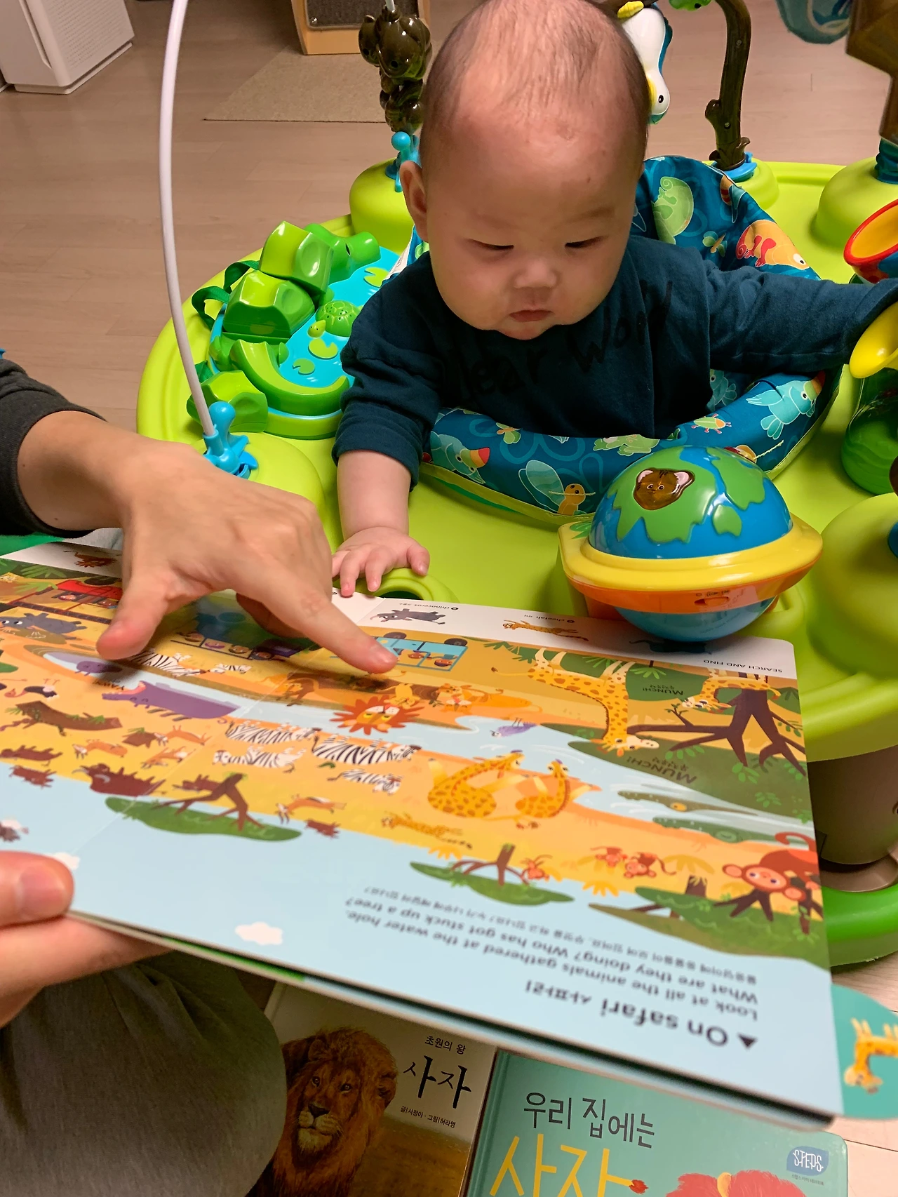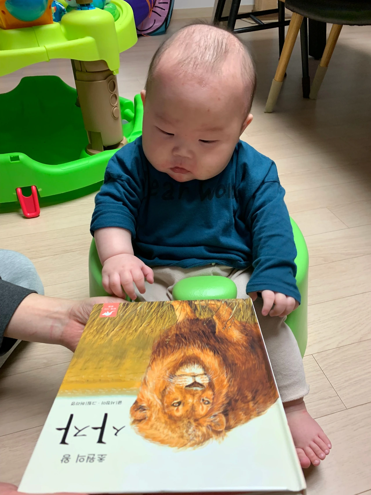 아빠가 사자를 가리키며 동물의 왕이라고 하네요!