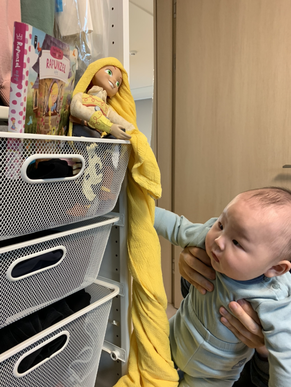 머리가 길어진 라푼젤 머리를 마녀가 마치 엘리베이터를 이용하듯 올라타고 다니는거 같아요.