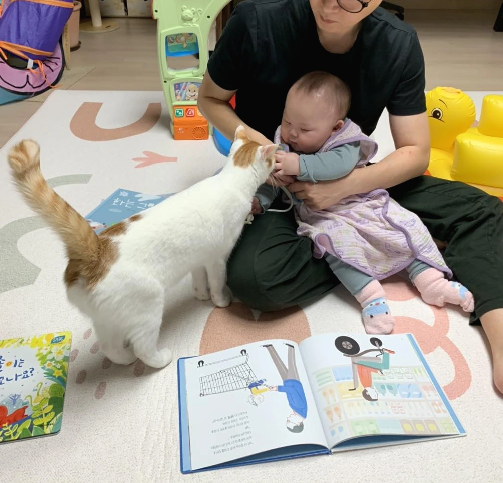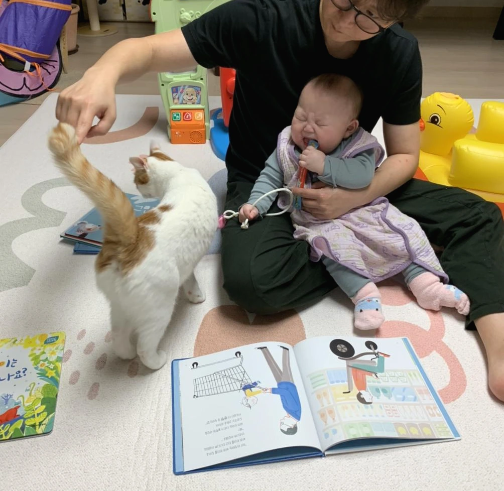 다른 친구들은 다 엄마랑 왔는데 나무만 아빠와 왔네요.