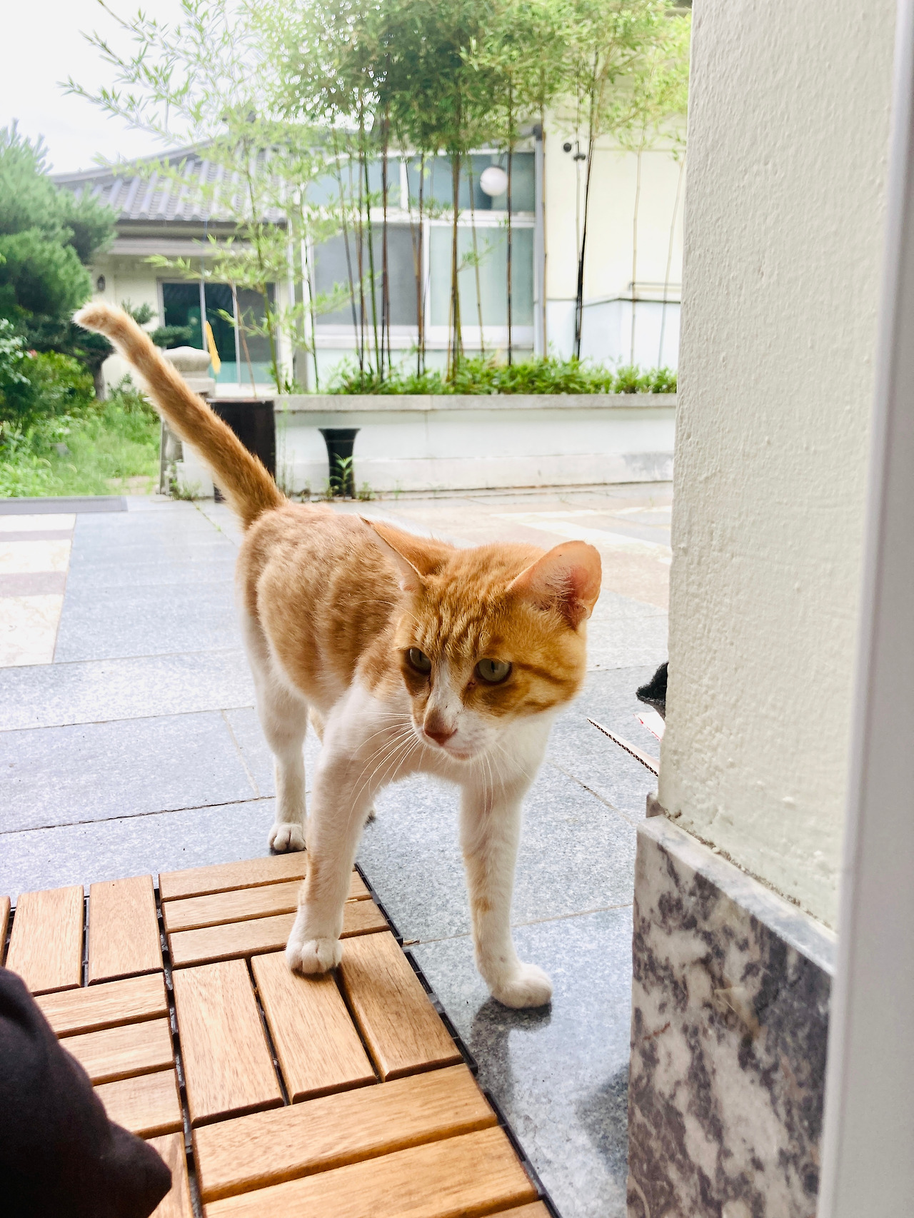 냥냥이가 사라지고 등장한 건 사모님이었다. 사장님과 커플로 잠깐 왔던 친구들이었는데 어느 순간 사모님 혼자 문 앞에 와서 야옹야옹했다. 밥 달라는 건가 싶어서 밥을 주었는데 먹는 둥 마는 둥 하더니 다리를 쓱~ 훑고 엄청 애교를 부리는 거였다. 완전 개냥이였다. 이 친구는 말이 너무 많아져서 사모님에서 말마니로 개명을 했다. ㅎㅎ 또 얼마나 귀찮게 하는지 마당을 걸으면 다리사이를 통과해 다녀서 걷기도 힘들었다. 귀찮기도 하면서 또 안 보이면 궁금하고, 그럴 때 나타나 발라당 해주면 나는 또 힐링받았다. 팜므파탈 말마니였다. 눈곱이 많이 껴서 몇 번 닦아주다 안 되겠다 싶어 눈곱 세정액을 주문했다. 그런 후 거짓말같이 말마니는 발길을 뚝 끊었다. 설마 너도 임신한 거니?... 어디선가 잘 먹고 사랑받고 있으리라 믿고 있다. 고양이 소리가 나면 말마니가 왔나 계속 창밖을 살폈지만 아니었다.