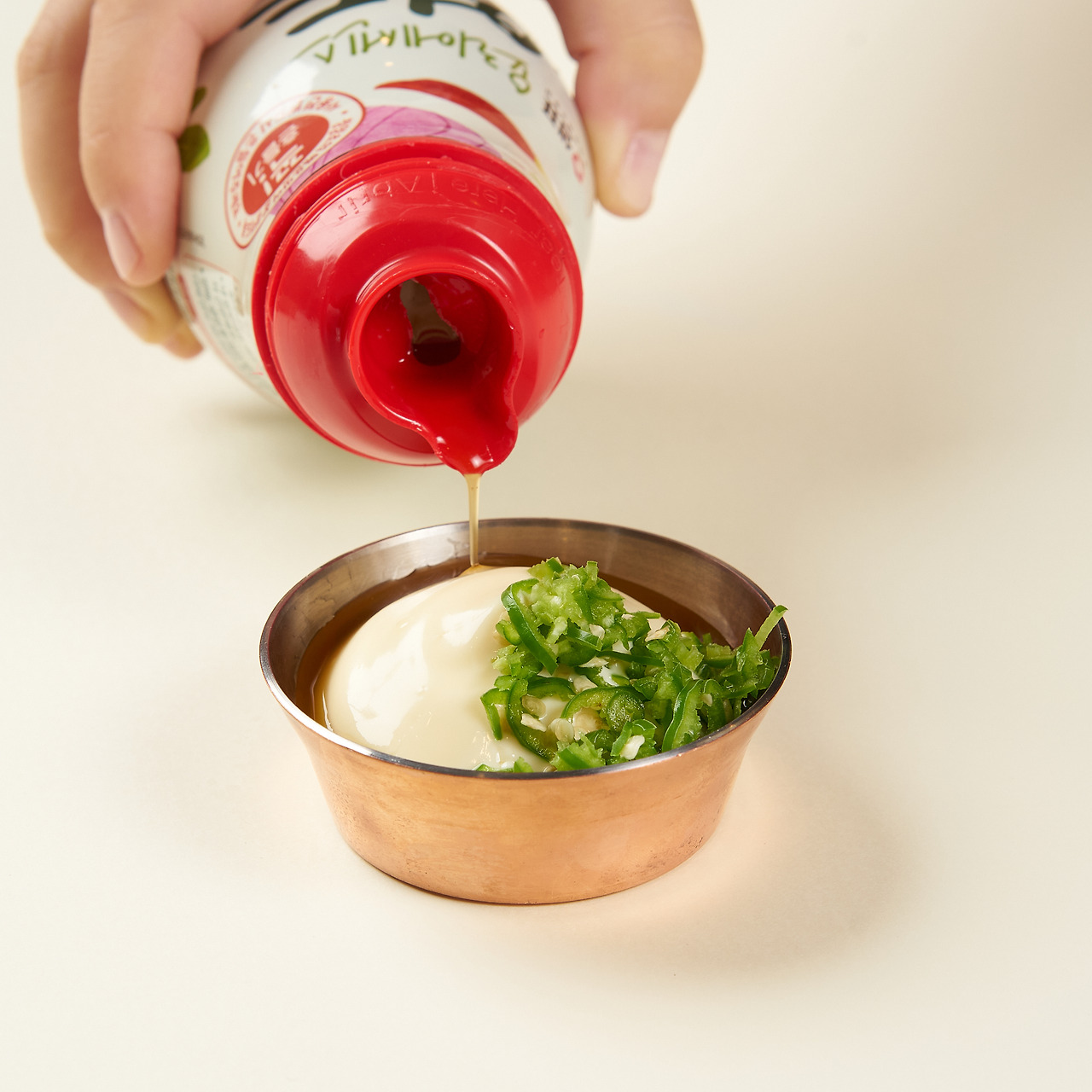 3. 마요네즈에 연두 청양초, 다진 청양고추 올려주면 소스 완성!